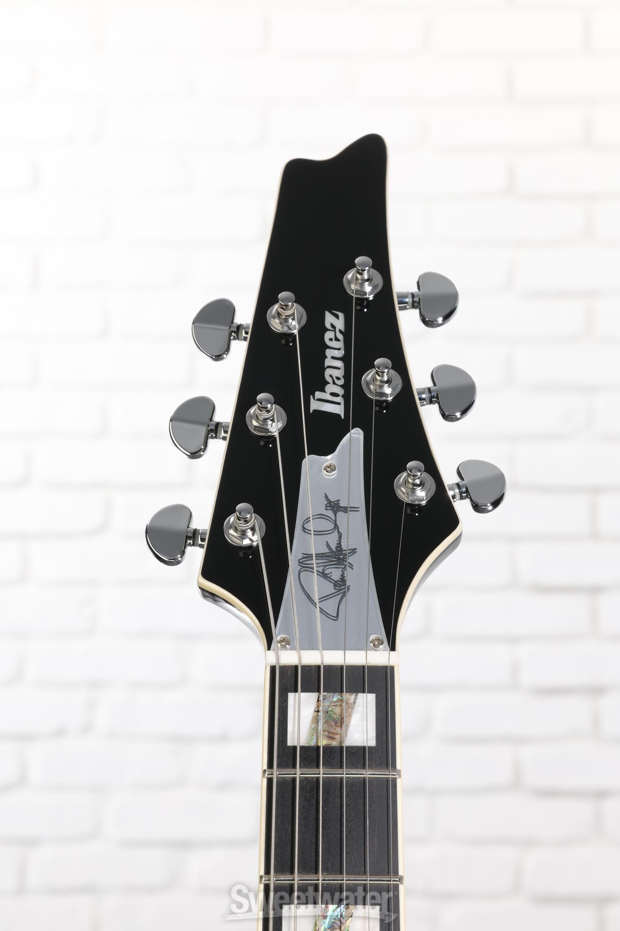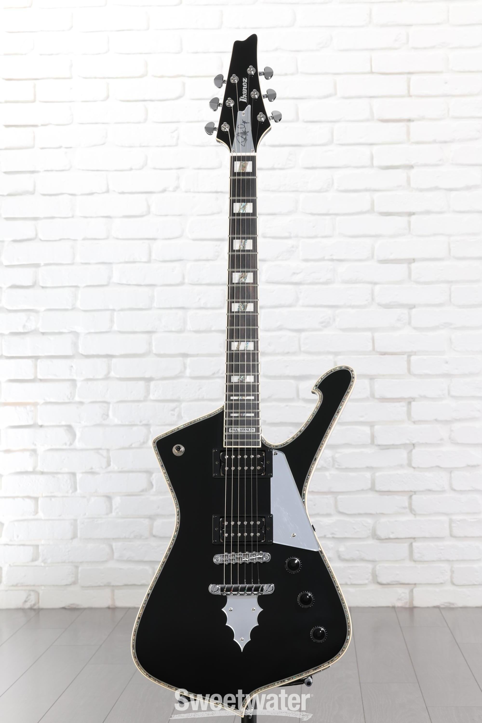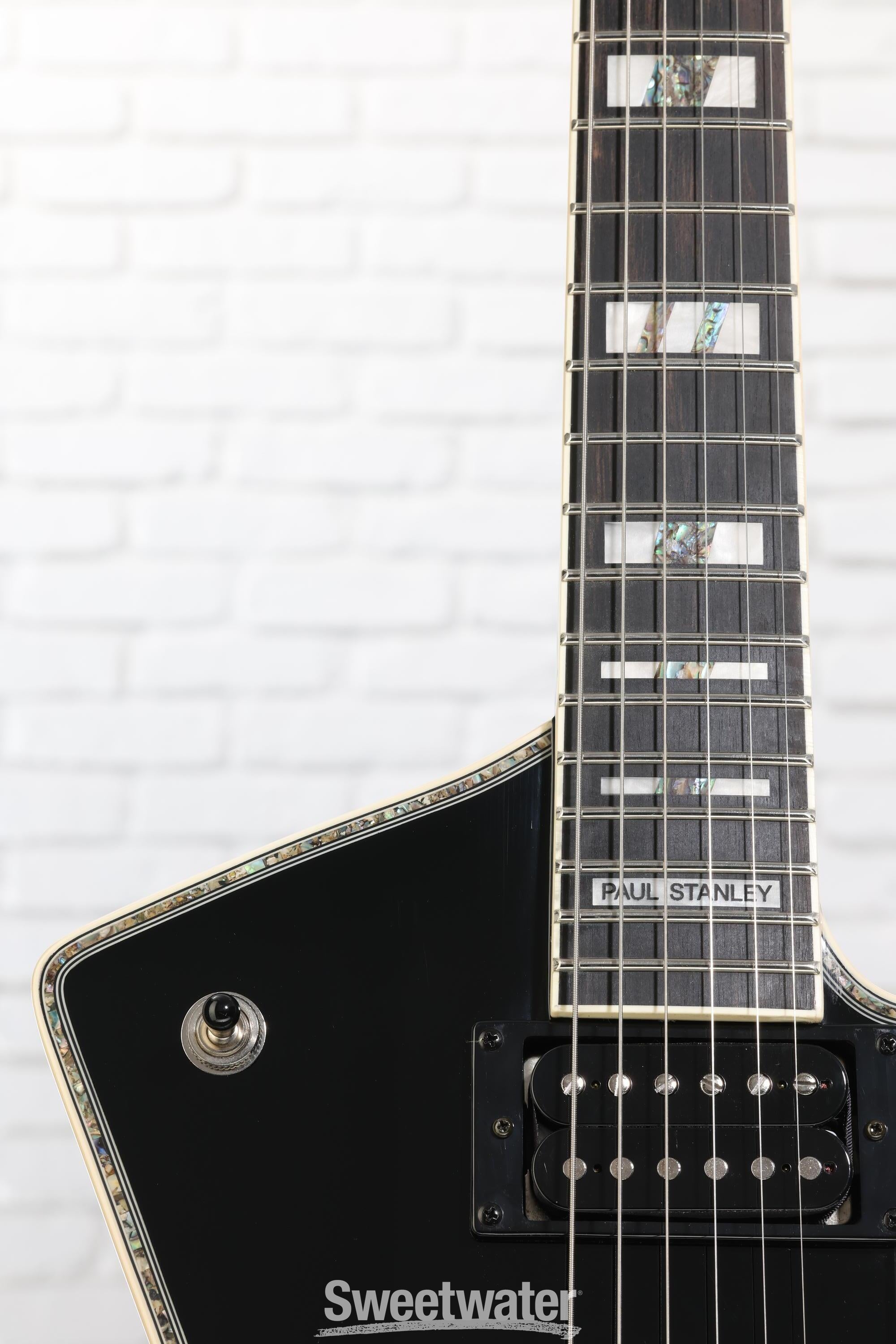 Rock out like the Starchild with the Ibanez PS120 Paul Stanley signature model guitar! This axe sports a speedy 3-piece mahogany set neck, and the premium ebony used for the bound fingerboard doesn't just look incredible - it also gives you buttery playability that's off the scale. Top-flight appointments abound on this gorgeous guitar, including the sustain-enhancing Full Tune III bridge and Quik Change III tailpiece. And then there's the abalone binding that perfectly complements the black finish of this superb instrument.