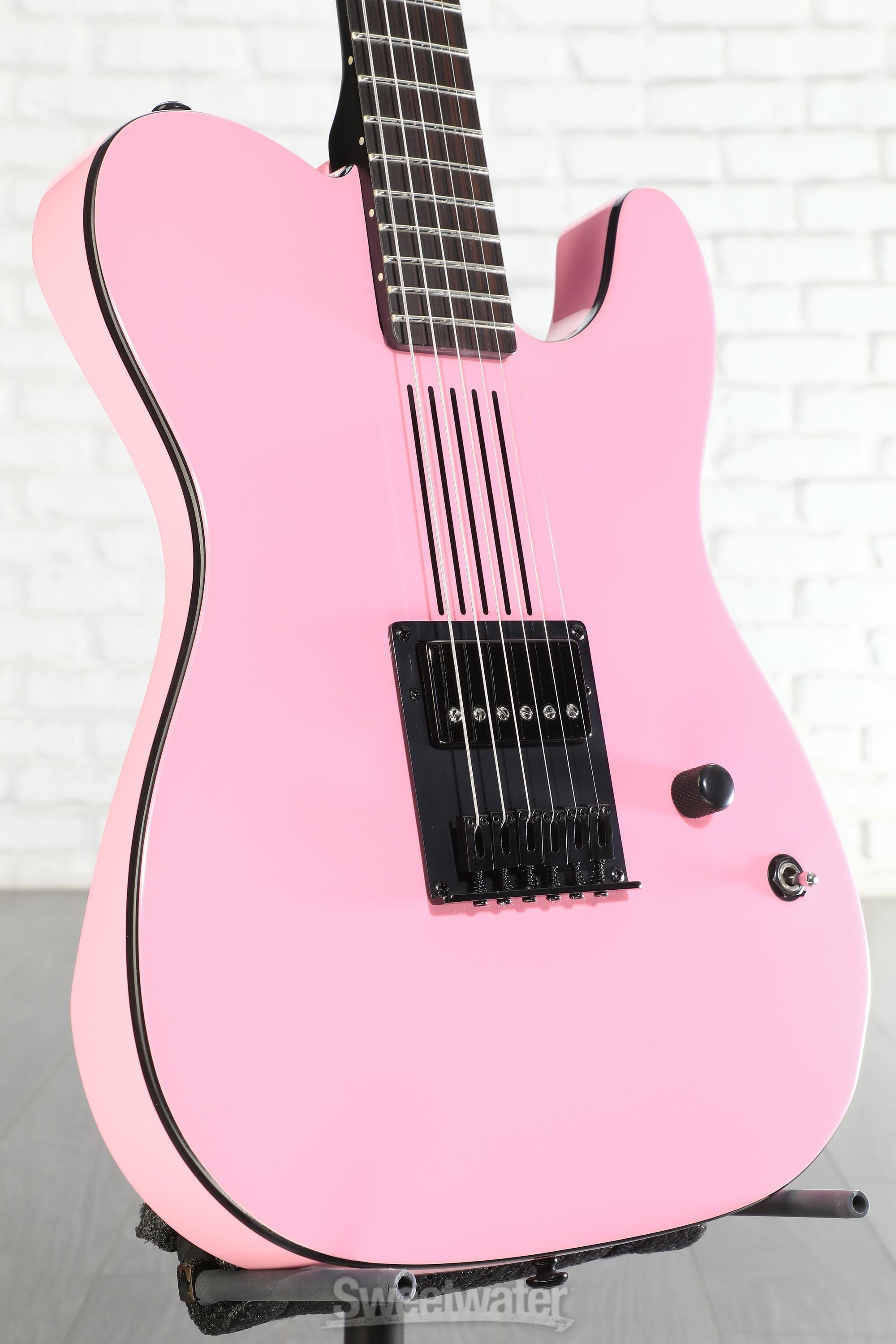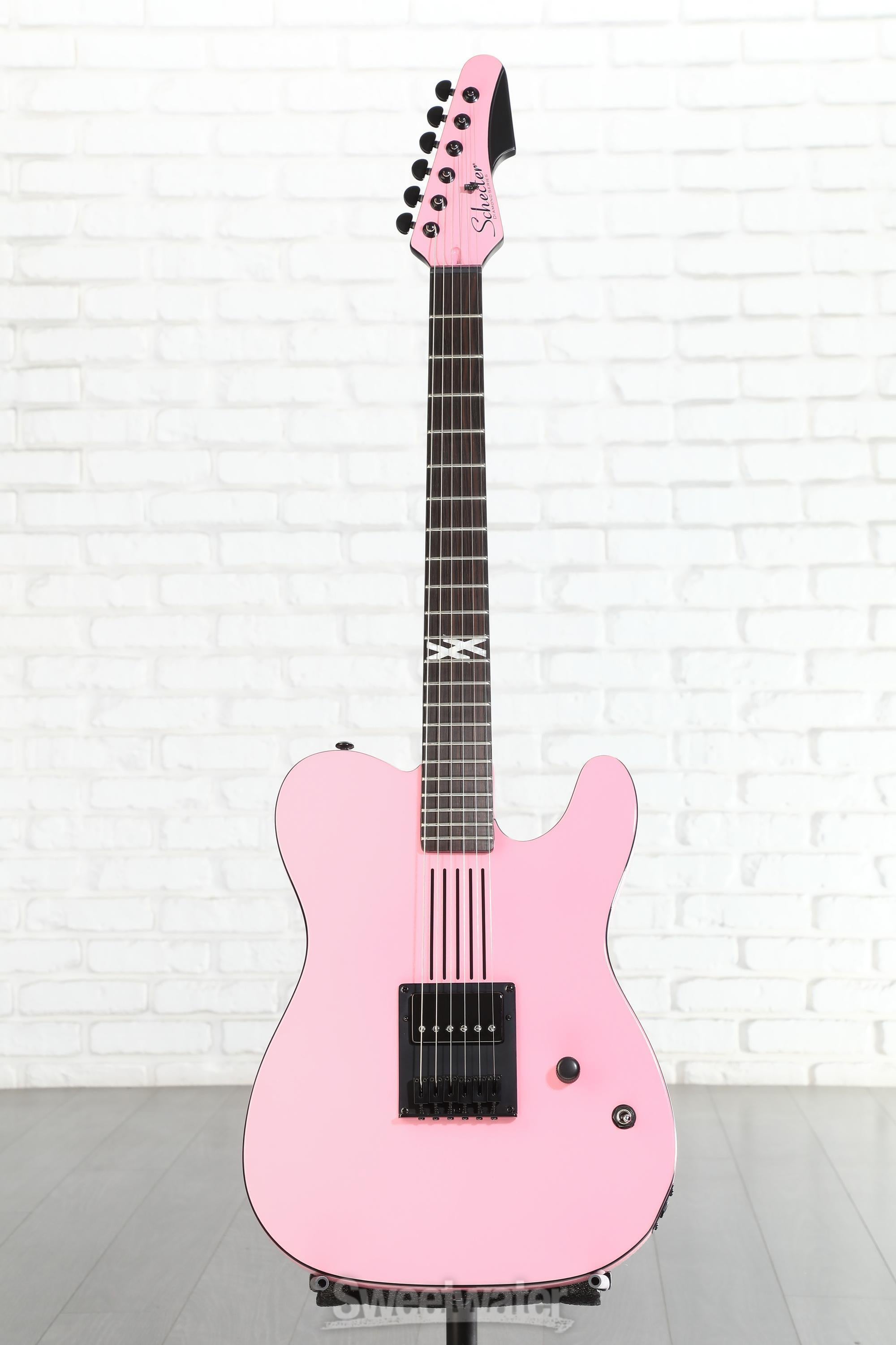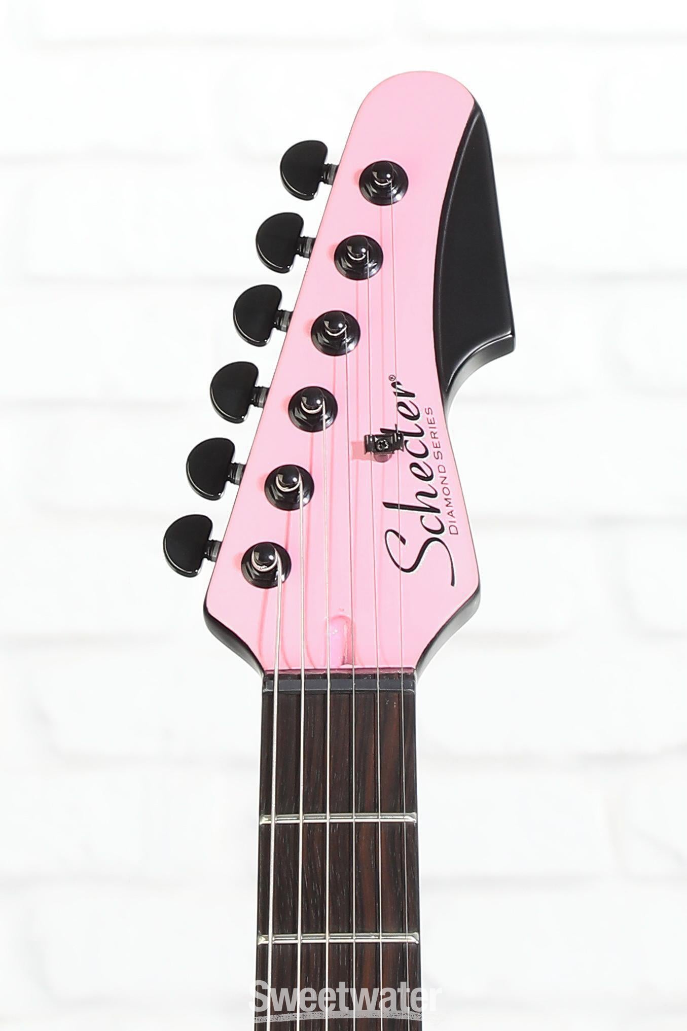 Ready to lock and load? The Schecter Machine Gun Kelly Signature PT Electric Guitar arms you with the weapon of choice of the boisterous rapper/actor/punk rocker. Inspired by MGK’s actual Schecter featured on the cover of his 2020 album, Tickets to My Downfall, this axe’s slick pink paint job and black binding combine with its honest electronics and control layout to strike a radical balance between contemporary pop aesthetics and the minimalism of punk. In other words, this axe has the looks and the firepower to match! From the Schecter locking tuners to its carbon-fiber reinforcement, all the way down to a single humbucker and master volume, you can be sure the MGK Signature is built to take a little punishment and dish out its fair share along the way.