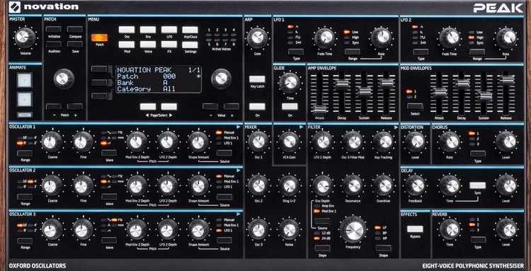 From straight up saw waves to frequency-modulated sines, you'll notice the Novation Peak synthesizer has that punchy, three-dimensional sound analog synths are known for. The key is its numerically controlled New Oxford Oscillators, which sound analog but also give you access to 60 digital wavetables. And with three oscillators available per voice, that's a ton of sound design potential before you even reach for the analog multimode filter.