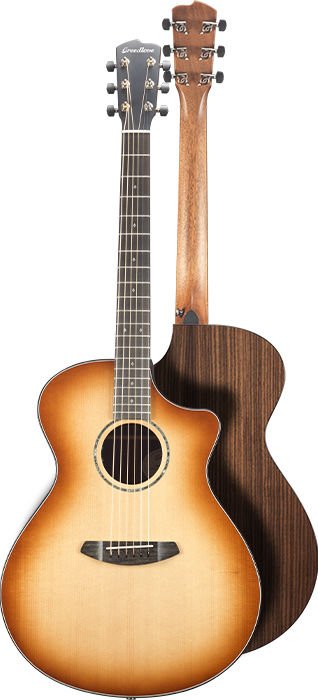 The Breedlove Premier series features premium tonewoods that were responsibly and sustainably sourced by Breedlove's team of wood experts. The Premier Concerto CE features solid East Indian rosewood back and sides with a solid Sitka spruce top. By combining rosewood's powerful bass response and extra-present midrange with Sitka spruce's snappy attack and excellent note definition, this guitar delivers a wonderfully balanced tone with the punch of a heavyweight. Made from sustainably sourced, non-clear-cut tonewoods, the Premier Concerto CE is a guitar that sounds just as good as it looks. And when you hit the stage, the Premier Concerto CE’s LR Baggs Element electronics deliver a plugged-in tone that will leave your audience speechless. When you open the case for the first time, you’ll get a Guitar Portrait that calls out your guitar’s specifics, from its weight and thickness to where the tonewoods were sourced.