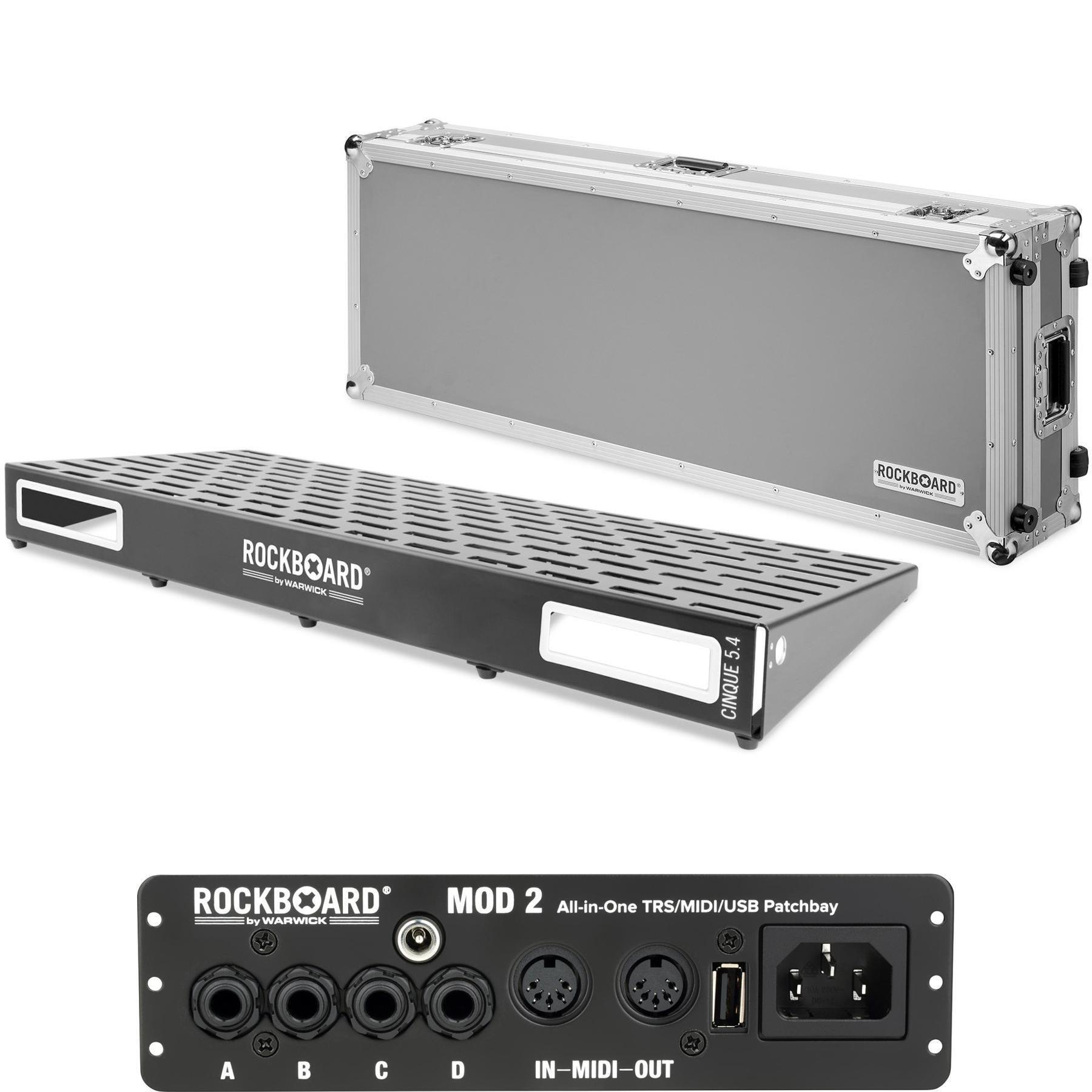 With room for up to 30 stompboxes, the RockBoard by Warwick Cinque 5.4 is a professional-grade pedalboard built for the demands of the stage. Crafted from lightweight, cold-rolled aluminum, its seamless, 10-degree angled surface offers edge-to-edge real estate for your pedals. The slotted design makes mounting effects a breeze and pairs seamlessly with RockBoard's innovative QuickMount system, eliminating the mess of hook-and-loop tape. It also features dual slots for RockBoard's all-in-one MOD patchbays, pre-drilled holes for LED Light mounting, and full compatibility with The Tray power supply mounting system. Built to endure the rigors of touring, the RockBoard Cinque 5.4 boasts U-shaped bracing for superior torsion resistance and a rugged black powder coated finish. And when it's time to hit the road, the included flight case ensures your gear travels safely and in style.
