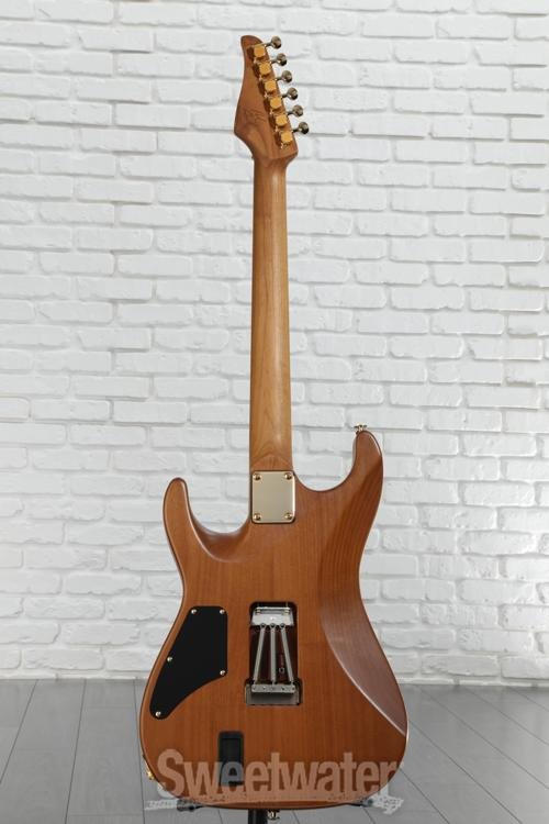 Reb Beach has been a part of the Suhr family since he bought his first guitar from John Suhr in 1986. Based on Reb's cherished number-one axe, this Suhr Reb Beach Signature Series Standard offers an exquisite combination of build quality, aesthetics, and tone with some additional refinements. The Reb Beach Signature Series Standard starts with a roasted alder body and a koa veneer on top for a consistent aesthetic. Its roasted maple neck and fingerboard boast an Even C RB shape, with a compound radius and 22 heavy-nickel frets. A trio of EMG active pickups churns out a wide-ranging miscellany of smooth leads, muscular growls, and guttural grindage. As you'd expect, the Reb Beach Signature Series Standard is well-equipped for scoops, flutters, and harmonic dive-bombs, thanks to a Floyd Rose Original double-locking tremolo, which is reinforced by Gotoh Mini Key tuners for maximum fortitude. Players looking for a made-to-measure, uncompromising, winner-take-all guitar with a penchant for high-octane tone and nimble-fingered fretboard maneuvers will find their home with the Reb Beach Signature Series Standard.