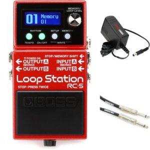The BOSS RC-5 Loop Station gives you 13 hours of pristine 32-bit stereo record time parceled out into 99 phrase memories, which store not only your base loops and overdubs but also the tempo and reverb assignments to any of the 114 onboard drum grooves and seven drum kits you've chosen for accompaniment. This takes the RC-5 far beyond traditional looper territory and into something more akin to song management. You can quickly lay down chords, bass lines, melodies, and rhythms for scratch padding new ideas to potential bandmates, or you can turn those loops into full-production live solo accompaniment. And thanks to the RC-5's USB connection, you can easily back up and reload loops. Through it all, the BOSS RC-5 Loop Station remains fast to learn, easy to use, and endlessly fun to play around with. The animated RGB backlit LCD keeps you apprised of measure, beat, and loop status every step of the way. Power user? The RC-5 also gives you stereo ins and outs, an assignable external footswitch/expression pedal port, and even TRS-MIDI in/out for syncing with drum machines and remote operation from your pedalboard MIDI switcher.