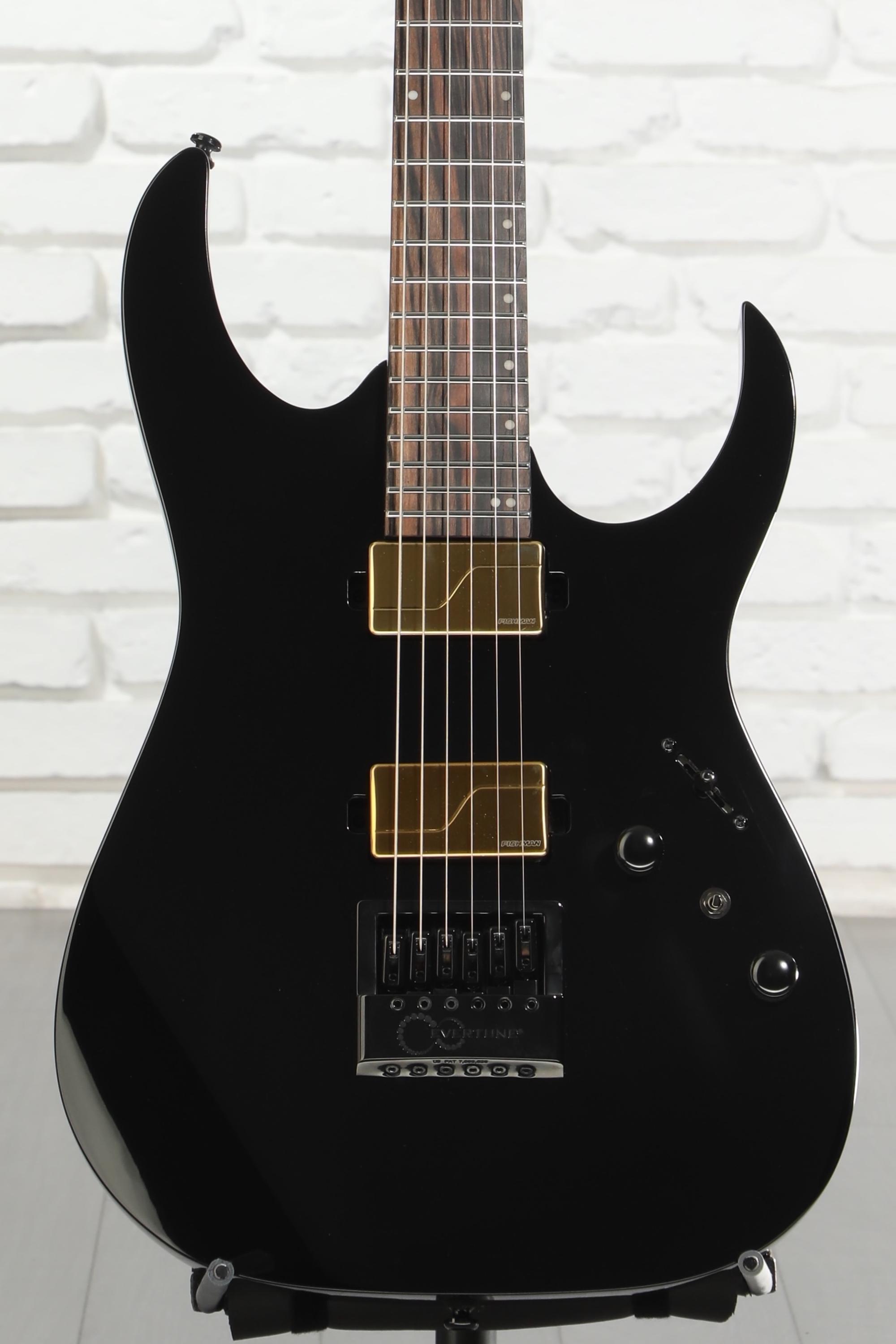 Teeming with 21st-century appointments, the Ibanez RGR52ET exemplifies what the company’s experimental Axe Design Lab series is all about. This solidbody electric guitar is built around a solid slab of nyatoh, carved into Ibanez’s classic RG shape and topped with maple. Its 3-piece maple Wizard III neck offers extreme playing comfort, further elevated by a flat-radius Macassar ebony fingerboard with 24 stainless steel frets. Ear-grabbing tones abound when you plug the RGR52ET in, courtesy of multi-voice Fishman Fluence Modern humbuckers. Furthermore, an EverTune bridge and Gotoh tuning machines ensure spot-on intonation — even under extremely primal playing conditions. Offset-dot fingerboard inlays, Luminlay side dots, a reverse headstock, and a gleaming gloss-poly finish round out the RGR52ET’s outstanding features. Players with a penchant for precision will find that the Ibanez Axe Design Lab RGR52ET ticks all the right boxes, and they’ll have a difficult time putting this state-of-the-art solidbody down.