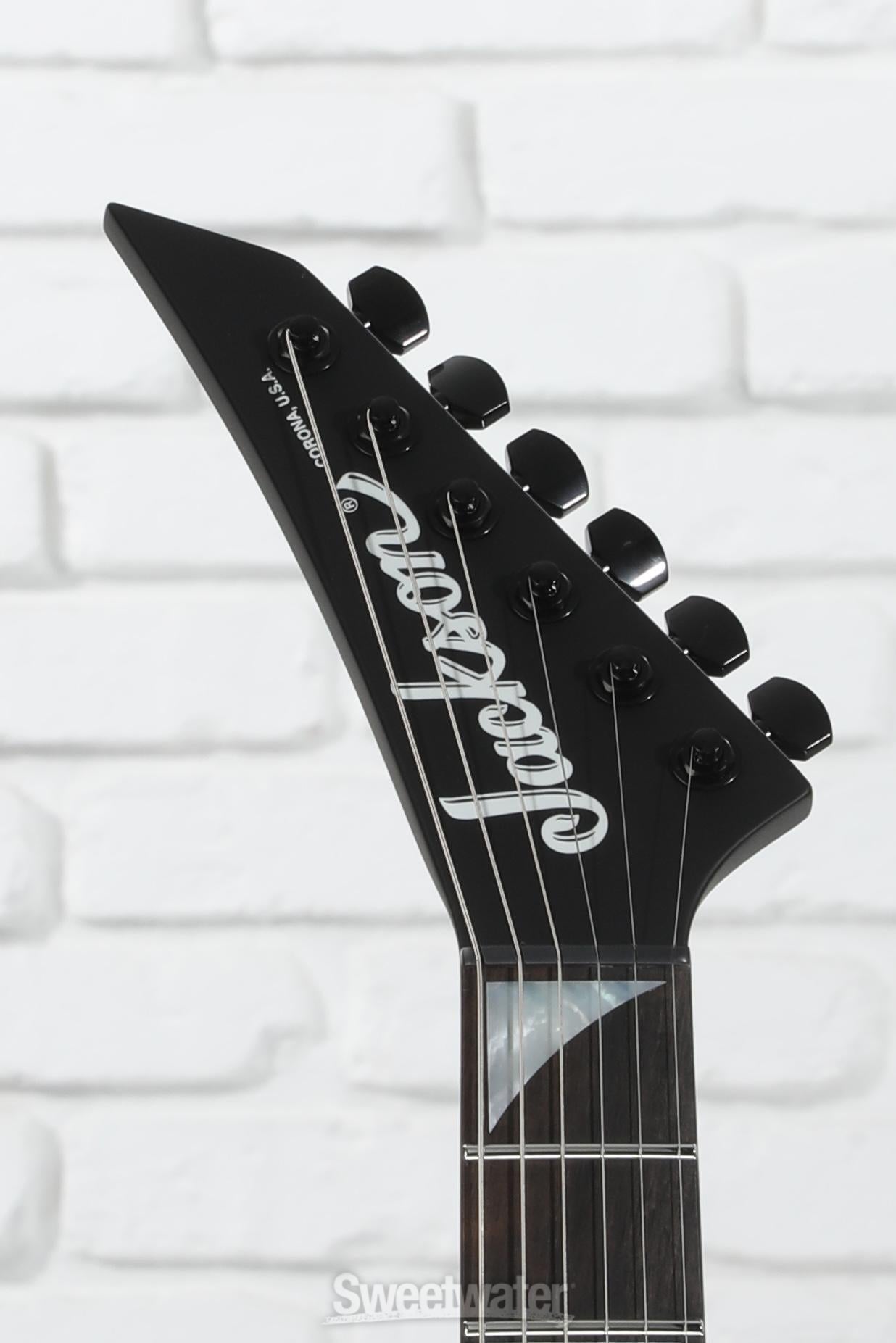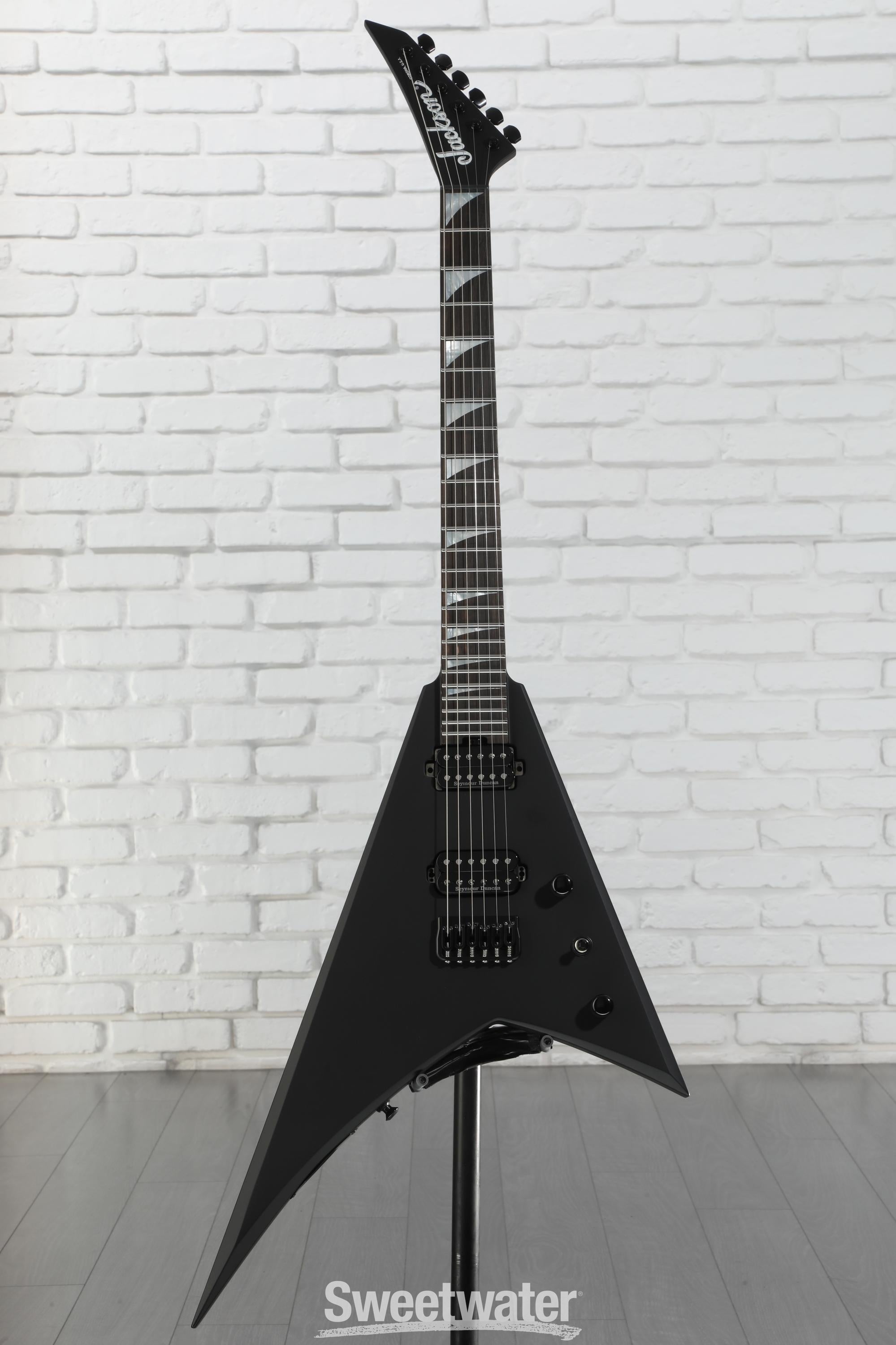 A contemporary update of the early-’80s Randy Rhoads model, the Jackson American Series Rhoads RR24 HT offers the modern player a razor-sharp blend of heritage and innovation. This sleek, aggressively styled solidbody electric guitar boasts an asymmetrical, offset-V-shaped alder body, which is reinforced by robust neck-through construction, ensuring rock-solid stability and natural, singing sustain in endless supply. The RR24 HT features a 3-piece maple Speed Neck, which is capped with a lightning-fast compound-radius ebony fingerboard and crowned with 24 jumbo-size stainless steel frets. Matched with a high-gain amplifier pushed to its limits, this axe’s direct-mount Seymour Duncan humbuckers unleash tones that rip through fusion, blaze through hard rock, and annihilate in full-throttle metal. You also get a Hipshot hardtail bridge, Gotoh locking tuning machines, and a Graph Tech TUSQ XL nut, ensuring bulletproof stability and maximum vibration transfer. Inverse mother-of-pearl sharkfin fingerboard inlays, Luminlay side dots, a reverse headstock, and a spotlight-ready satin finish put the perfect final touches on this exquisite instrument. Crafted where it all started — in Corona, California — the American Series Rhoads RR24 HT was forged for fearless shredders who dare to chase the same electrifying legacy Randy carved into rock history.