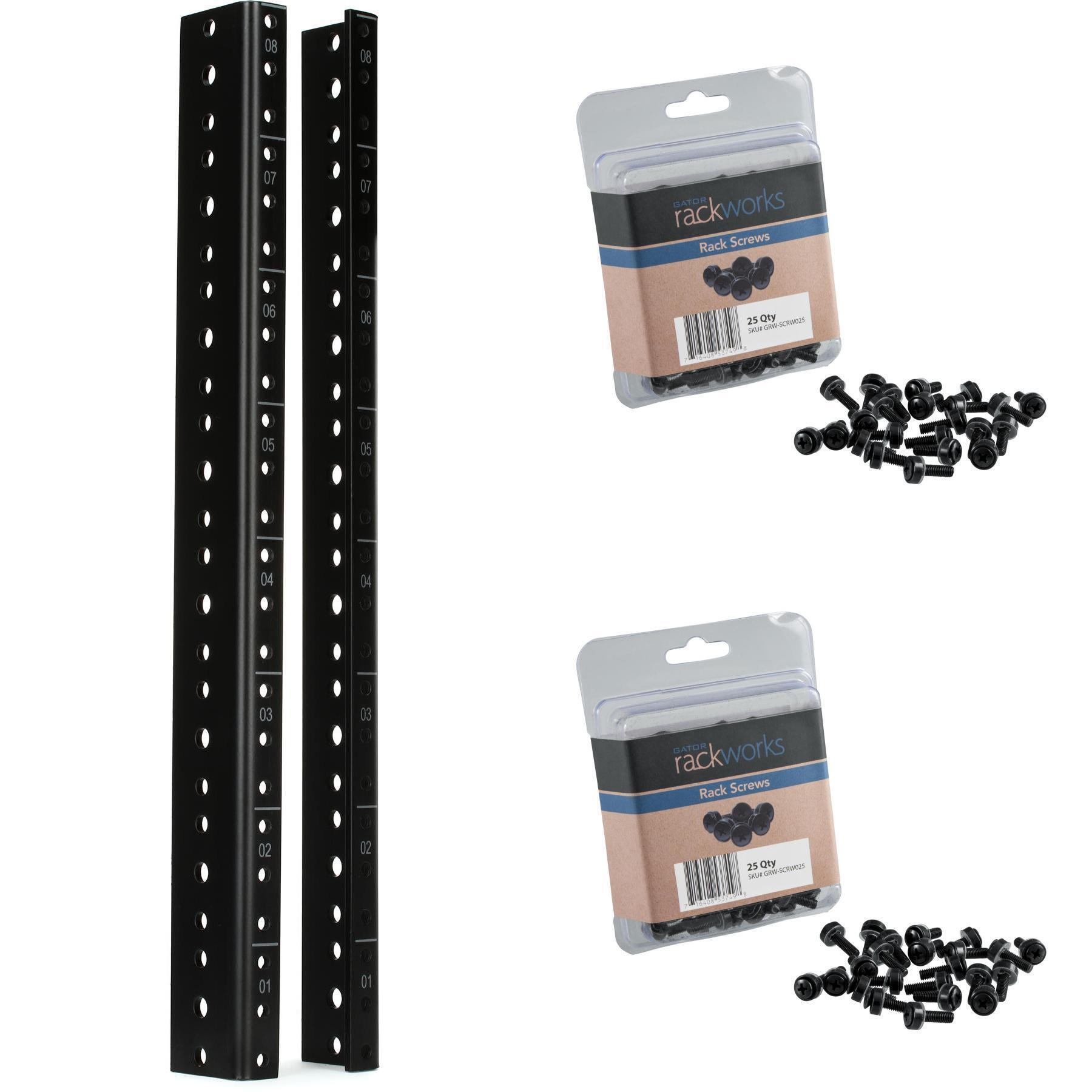 Gator's Rackworks rack rails keep your audio gear level and organized. Printed numbers and dividers ensure frustration-free installations. The rails themselves are made from durable 3mm cold rolled steel and come pre-tapped for standard 10-32 screws. A deluxe black powder coating provides a finished look. Whether you're building or upgrading, you won't be disappointed with Gator Rackwork rack rails from Sweetwater.