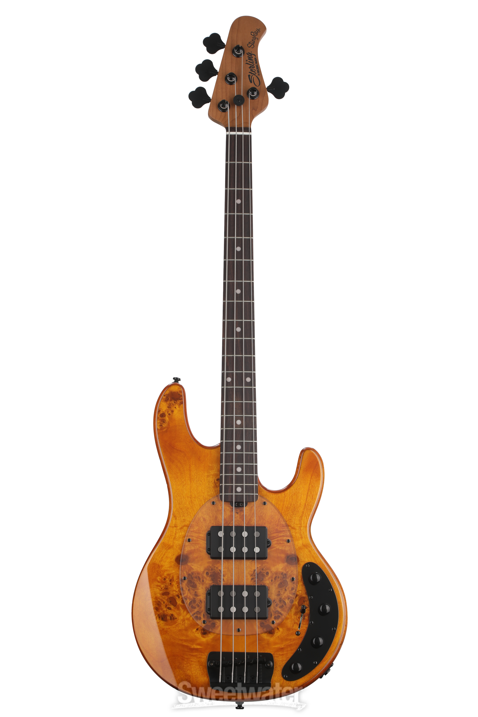 Take a second to gaze at the Sterling by Music Man StingRay RAY34HH’s gorgeous poplar burl top. It’s the kind of stunning instrument that attracts the eyes of other bassists when you’re playing live. For the StingRay RAY34HH, that stunning top is paired with a resonant nyatoh body for a balanced tonal foundation. Plug into your favorite amp, and the two Music Man-designed alnico humbuckers supply you with a powerful, punchy tone. Then, engage the 5-way pickup selector switch and the 3-band EQ to fine-tune your sound to taste. All in all, the Sterling by Music Man StingRay RAY34HH is a formidable addition to any musician’s stable of bass guitars.