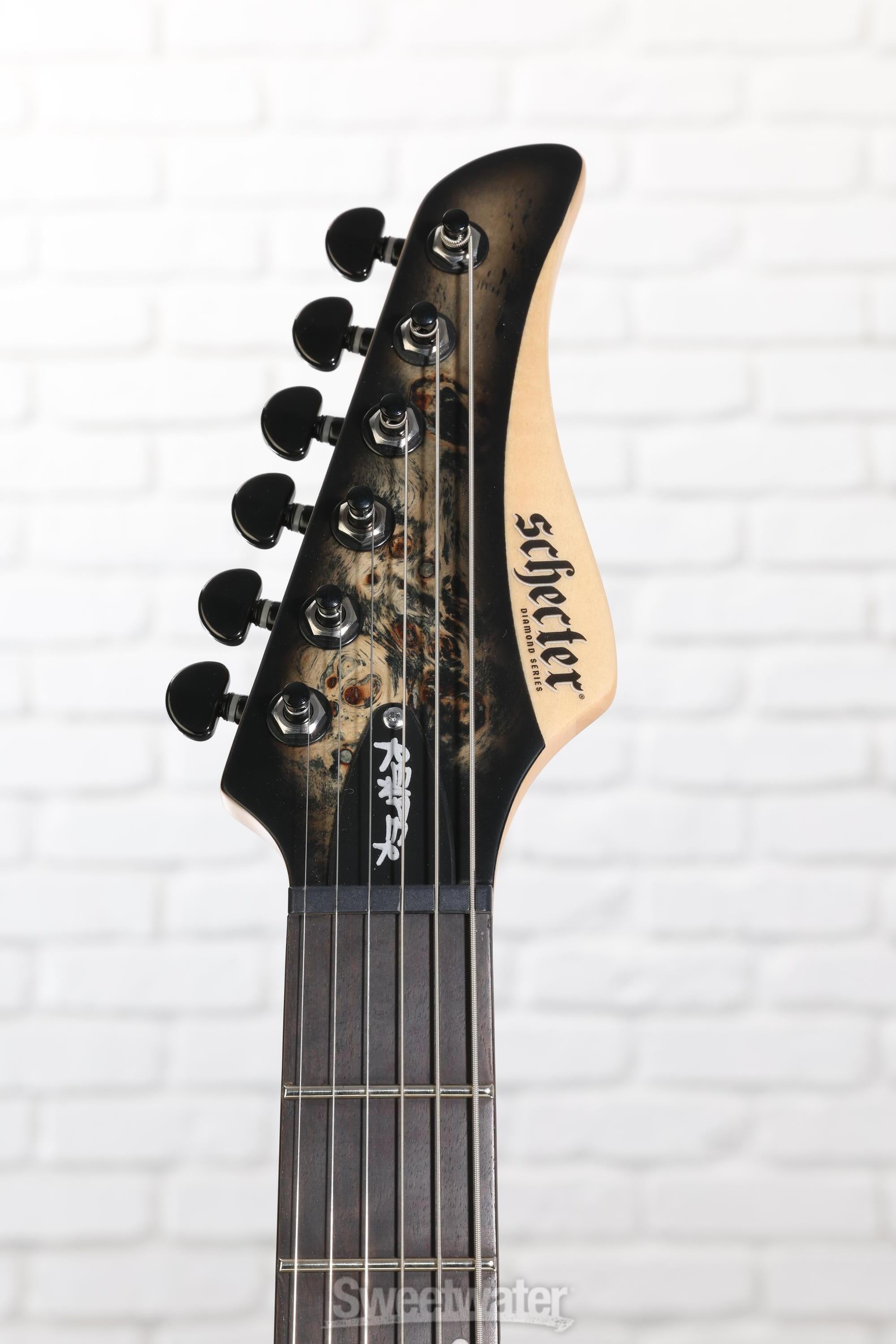 The Schecter Reaper-6 is simmering with natural tone and resonance, thanks to its poplar-burl-crowned swamp ash body. The swamp ash imparts a musical blend of warmth, brightness, and midrange "pop." This already exquisite tone is then balanced out with a poplar burl veneer, which also lends to the Reaper-6 a unique, eye-catching appearance. At Sweetwater, we appreciate an axe that produces great-sounding tone — even before you plug it in!