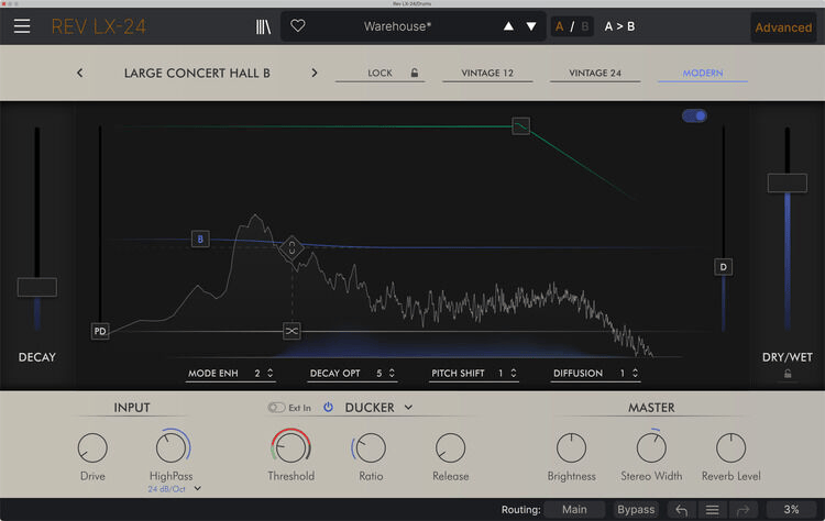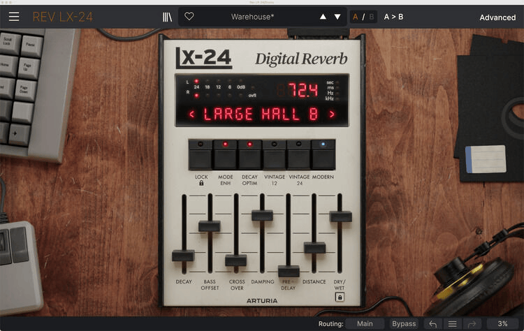 You don’t have to be a professional audio engineer to reap the benefits of the Rev LX-24 — its user-friendly interface is ideal for all! It offers an impressive aesthetic that honors the original unit, with the option to switch to Advanced View for a more modern control layout. One of Advanced View’s more valuable features is a visualizer that provides feedback and click-and-drag editing of your reverb sounds, all in real time! And while we’re on the topic of old school vs. new school, Arturia allows you to operate with both Vintage 12- and 24-bit converter emulation and modern converters, affording you the choice between darker and brighter sound response, respectively. Even keep track of your transformations with a dedicated A/B comparison!