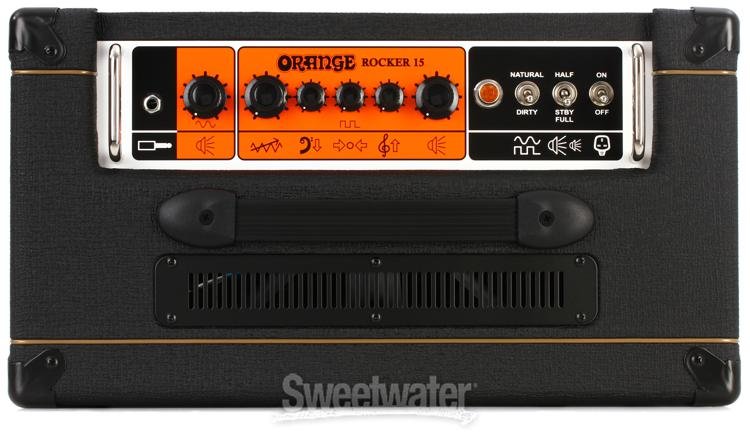 With crystal cleans, fat gain, and fuzzy drive, the Orange Rocker 15 gives you big amp sound without big amp size. The two-channel design features Natural for transparent, clean tones and Dirty for vintage-inspired gain, making it easy to dial in the perfect tone for your genre and gear. With onboard power scaling that retains your tone at any volume, a 3-band EQ, a tube-driven effects loop, and a 10-inch Orange Voice of the World Gold Label, the Rocker 15 thrives in any space. From your bedroom to the stage and everywhere in between, the Rocker 15 creates the freedom to explore every sound your guitar has to offer.