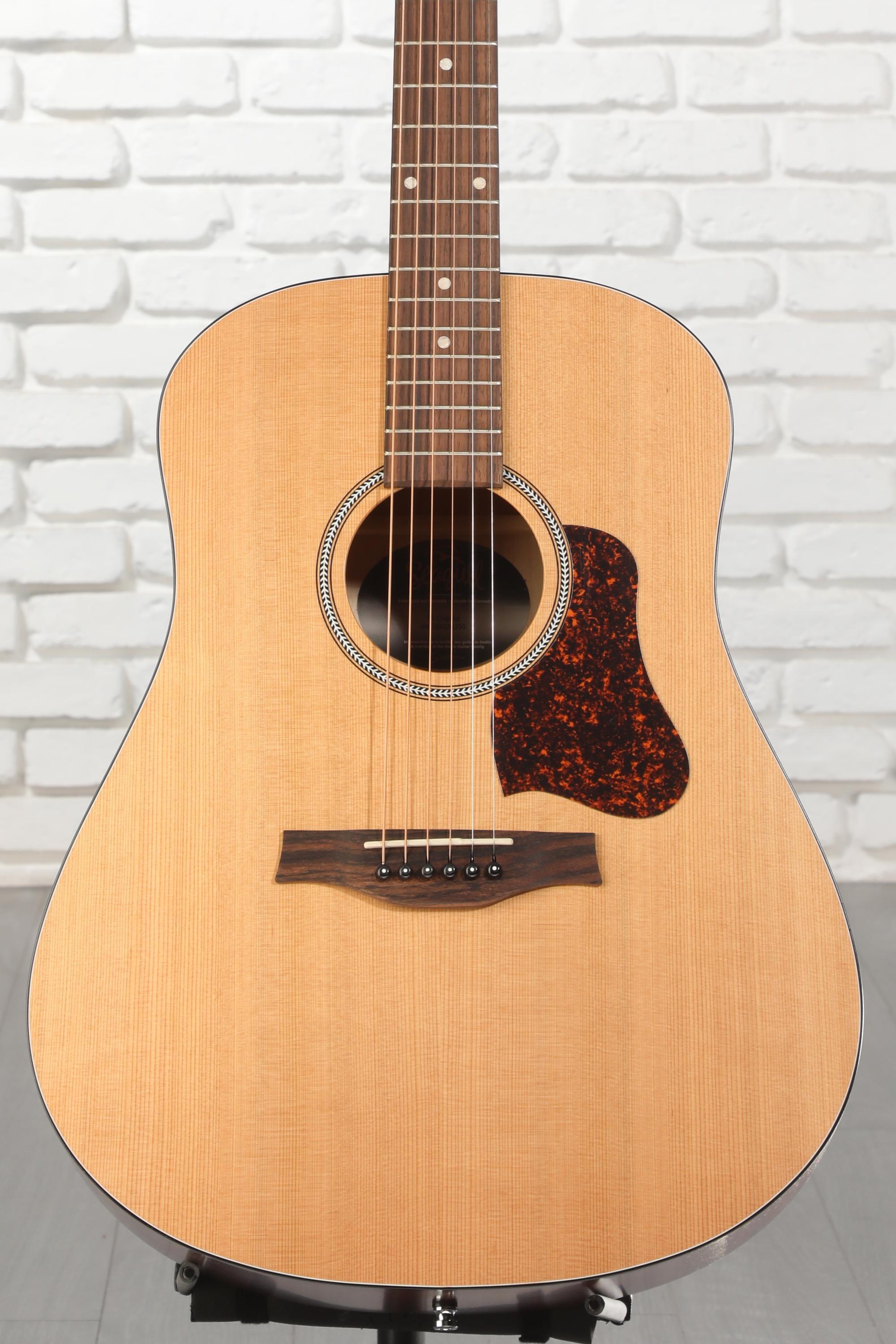 The Seagull S6 Original acoustic guitar offers smooth playability and great tone at an exceptional value. Its pressure-tested cedar top and 3-layer wild cherry back and sides give you a warm, detailed tone. The Seagull S6's modified dreadnought body shape eliminates unwanted boominess and gives you a full-range tone that's great for all styles of music. The integrated set neck and compound curved top offer increased tuning stability, resonance, and projection. Long known as a great value in the guitar world and appreciated here at Sweetwater, the Seagull S6 Original acoustic is an affordable guitar with great features.
