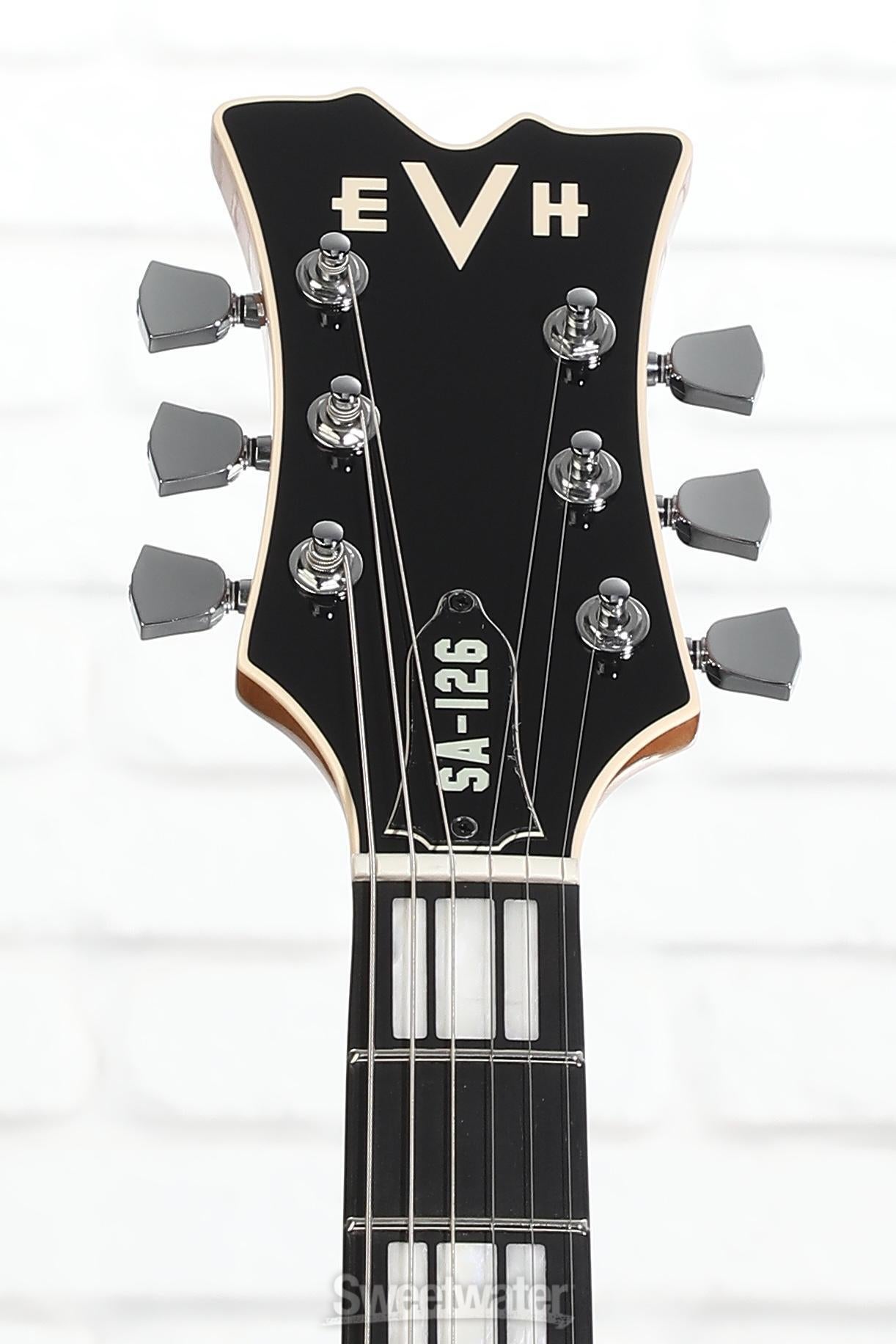 The EVH brand forges mammoth new territory with the Wolfgang Van Halen–designed EVH SA-126 Special! Merging all the most iconic elements of his father’s instruments with his respective 6-string tastes, Wolfgang’s SA-126 Special starts with a chambered semi-hollow mahogany body, a basswood center block, and a maple top that replaces the traditional F-hole with an E-hole to honor the immortal Edward Van Halen. Taken as a whole, this tonewood concoction delivers the rich, warm, and expressive sound of a semi-hollow, along with exemplary feedback rejection. Next, this guitar’s Tim Shaw–designed SA-126 humbucking pickups provide sweeping sonic versatility, tackling everything from high-gain “Brown Sound” fireworks to pure, rich cleans without batting an eye. Although the SA-126 Special represents a deviation from the EVH norm, this guitar’s slim graphite-reinforced mahogany neck, compound-radius ebony fingerboard, and jumbo frets supply the high-performance playability that Sweetwater guitarists have come to expect from EVH instruments. Inspired by Eddie, designed by Wolfgang, and ready to fuel a lifetime’s worth of ripping rock tones, the EVH SA-126 Special marks a superb addition to EVH’s 6-string pantheon.