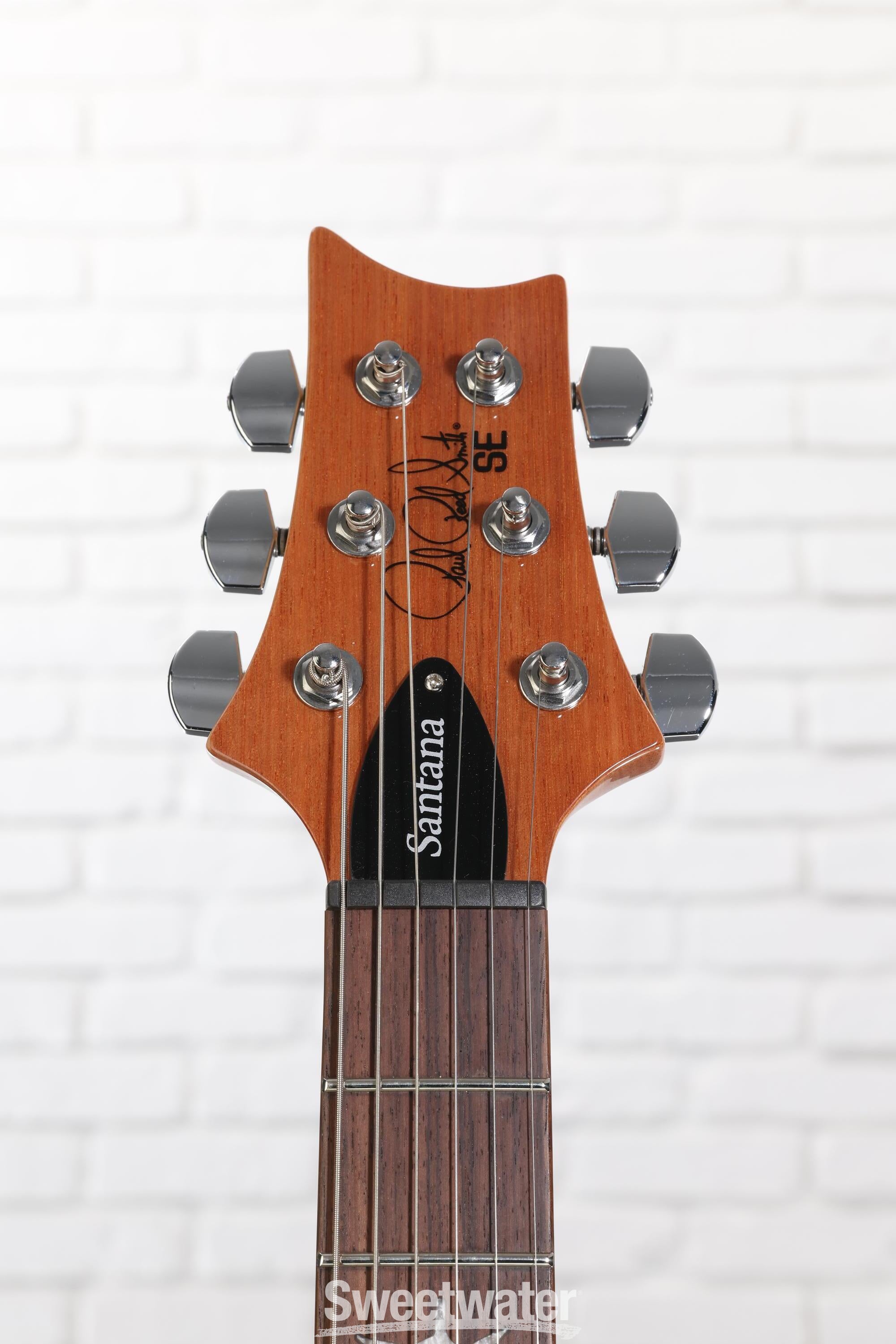 The all-mahogany body of the SE Santana gives you warm, detailed tones that make your music jump out of the guitar. The SE Santana's mahogany neck has a wide-fat carve, making it very comfortable for players who prefer a vintage feel. And the distinctive neck joint means you can reach all 24 frets easily for stellar high-fret access. The hardware is, as always, very stable and dependable. Take it from Sweetwater — you can count on the PRS-designed tremolo bridge and tuners to keep the SE Santana in tune while allowing you to express yourself at home, onstage, or in the studio.