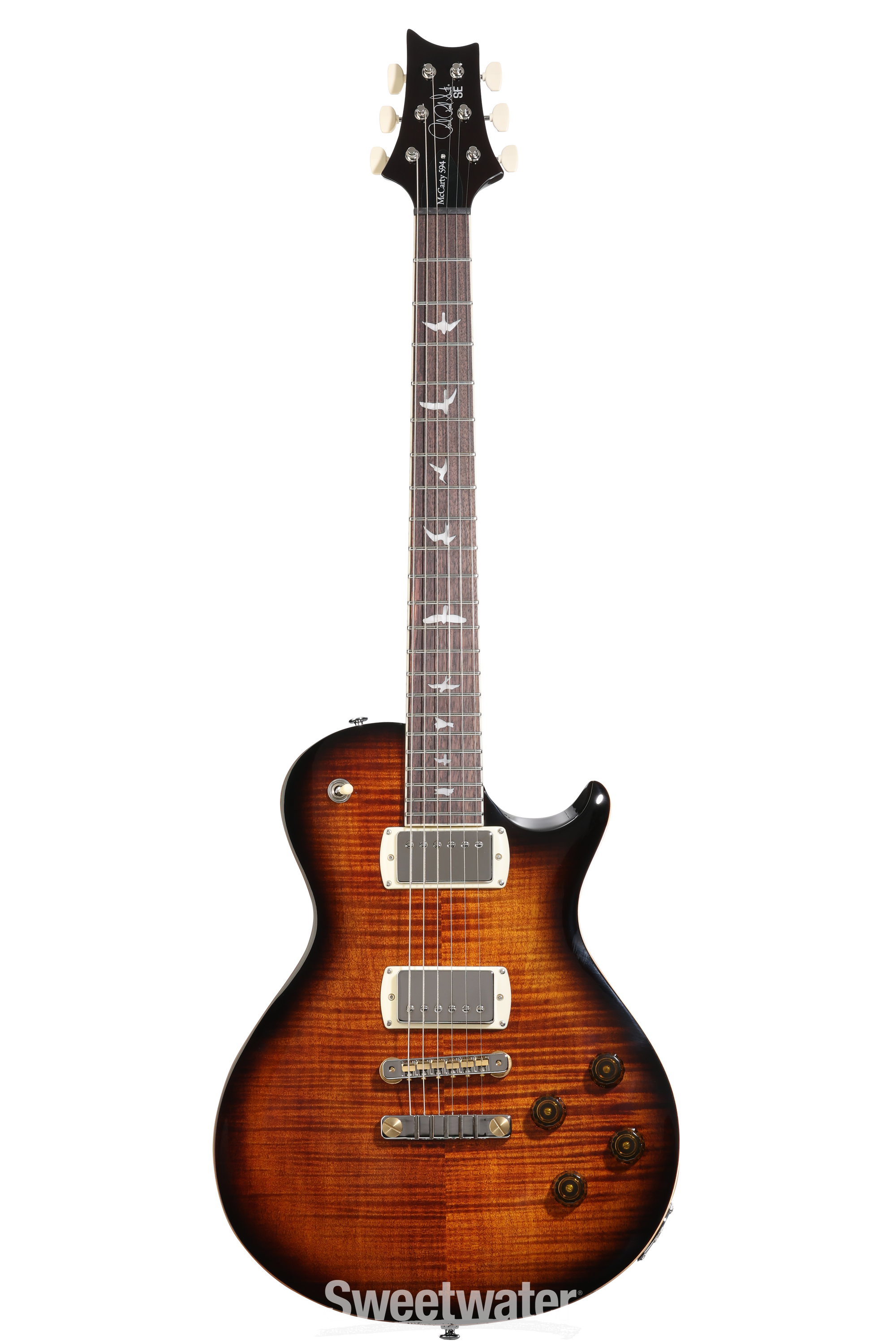 The SE Singlecut McCarty 594 boasts the top-shelf tonewoods PRS guitars are known for, including a resonant mahogany body and an eye-grabbing flame maple veneer top. Its mahogany neck features a comfortable asymmetrical Pattern Vintage profile, while its 22-fret, 10-inch-radius rosewood fingerboard facilitates effortless playability. And this guitar's strings will always feel silky smooth when playing and bending due to its 24.594-inch scale length, which is also where this model of McCarty gets its name.