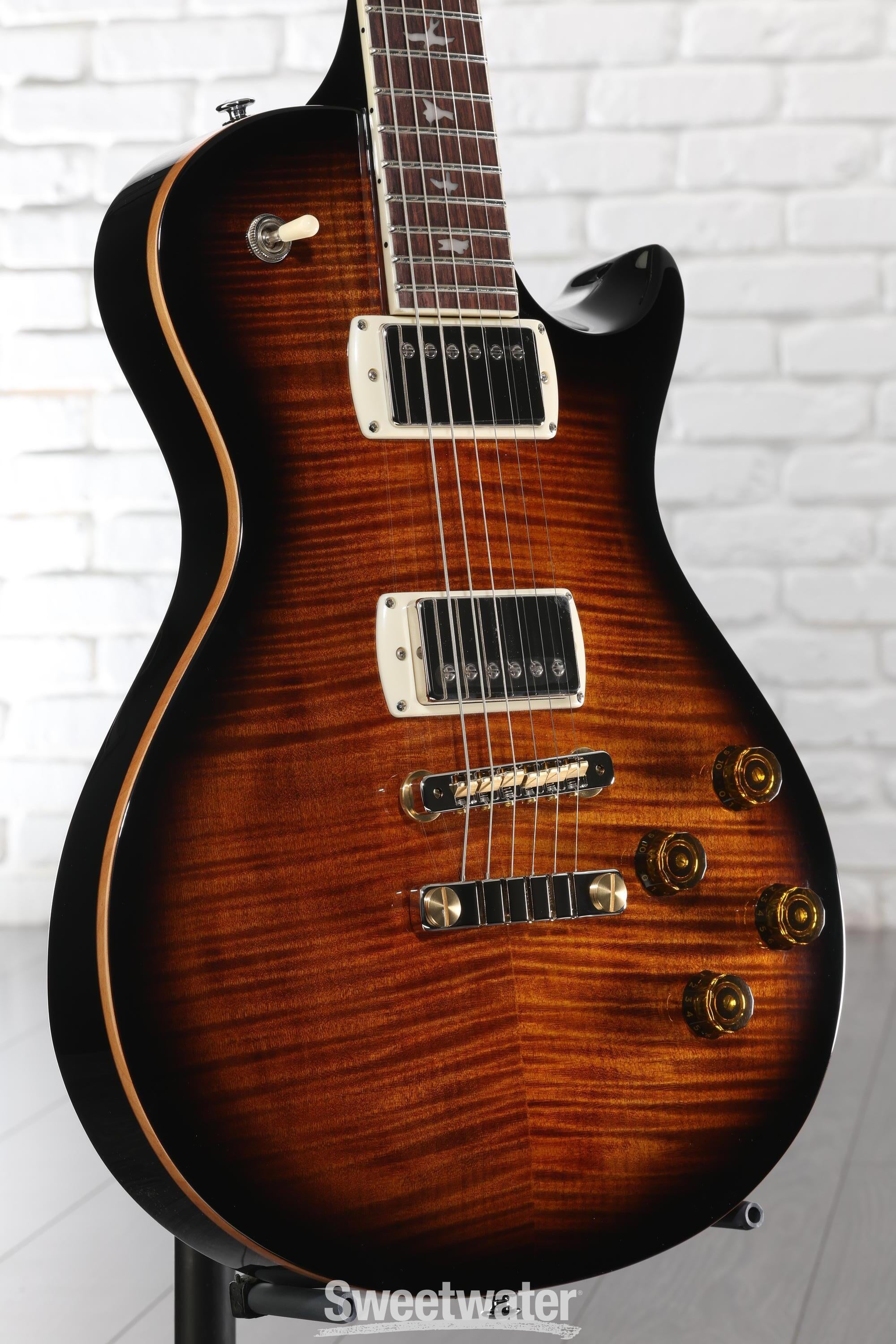 The Singlecut McCarty 594 is one of Paul Reed Smith's most popular models, and now, thanks to the PRS SE Singlecut McCarty 594, it's finally accessible to the masses. This exquisite solidbody electric guitar boasts legendary PRS quality and playability. A resonant mahogany body and an eye-grabbing flame maple veneer top ensure a tone and look that's guaranteed to exceed your expectations. You get a comfortable Pattern Vintage neck carve with an easy-playing 10-inch-radius rosewood fingerboard, along with a longer 24.594-inch scale length for a feel that's like no other. The SE Singlecut McCarty 594's 58/15 LT "S" pickups deliver vintage-tinged humbucking tones, while a 4-knob layout allows individual control of each pickup's volume and tone for maximum sonic versatility. You also get a high-quality PRS 2-piece bridge and PRS-designed tuners, plus attractive maple body binding and iconic PRS Birds fingerboard inlays. Finally, a durable, head-turning gloss poly finish ensures that the SE Singlecut McCarty 594 will look amazing for years to come.