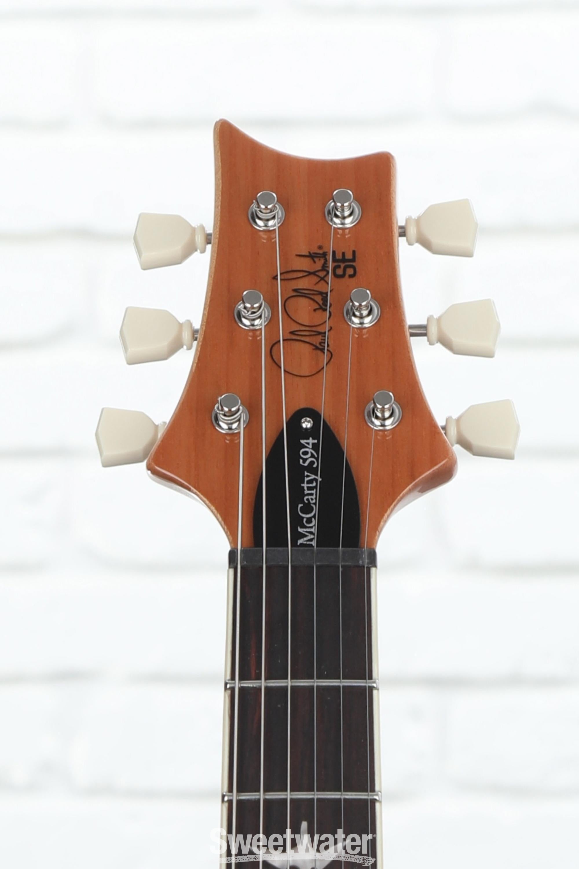 The SE Singlecut McCarty 594 boasts the top-shelf tonewoods PRS guitars are known for, including a resonant mahogany body and an eye-grabbing flame maple veneer top. Its mahogany neck features a comfortable asymmetrical Pattern Vintage profile, while its 22-fret, 10-inch-radius rosewood fingerboard facilitates effortless playability. And this guitar's strings will always feel silky smooth when playing and bending due to its 24.594-inch scale length, which is also where this model of McCarty gets its name.