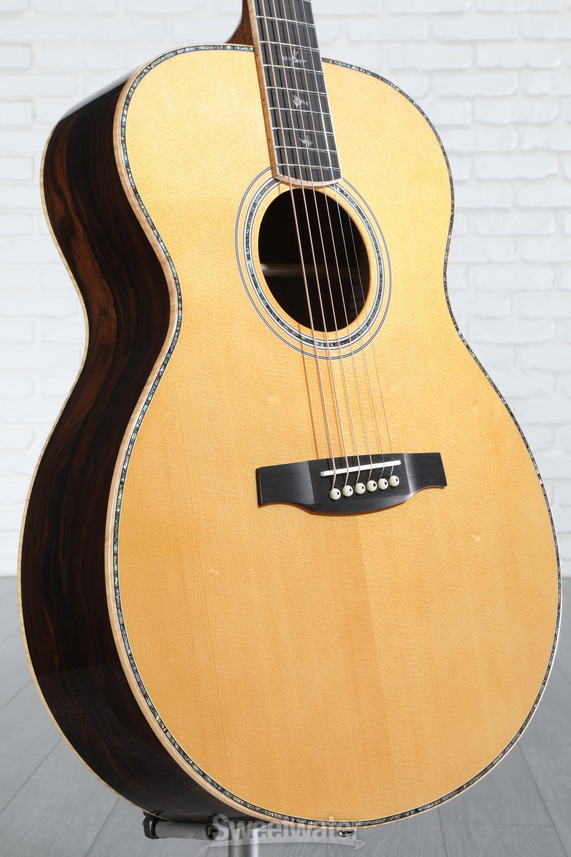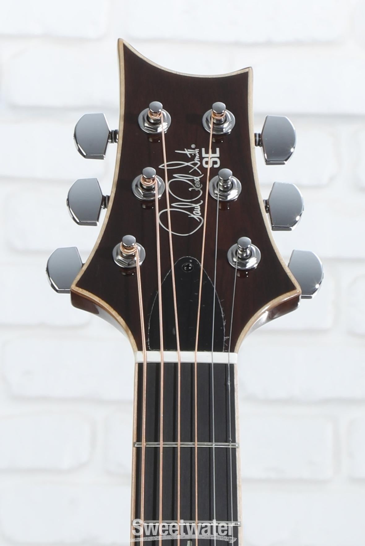 A gorgeous acoustic-electric sporting PRS’s Tonare Grand body style, the SE T60 Tonare exhibits a masterful playing feel with superb organic tonality. A top of solid Sitka spruce permits perfectly balanced delivery and vivid playing detail with a beautiful grain aesthetic to match, while its underside utilizes PRS’s Hybrid X/Classical bracing pattern to help the SE T60 Tonare project with conviction and loads of harmonious appeal. Playing with vintage command courtesy of a Wide Fat mahogany neck and ebony fingerboard, 6-stringers here at Sweetwater love the effortless glide that the SE T60 Tonare offers. Complementing Fishman electronics and proprietary 18:1 tuning machines make this an absolute dream for the stage. Bound throughout with curly maple and treated to an abalone rosette and purfling pattern, plus those iconic Birds inlays, the SE T60 Tonare never lets envious onlookers forget that it’s a true PRS through and through.