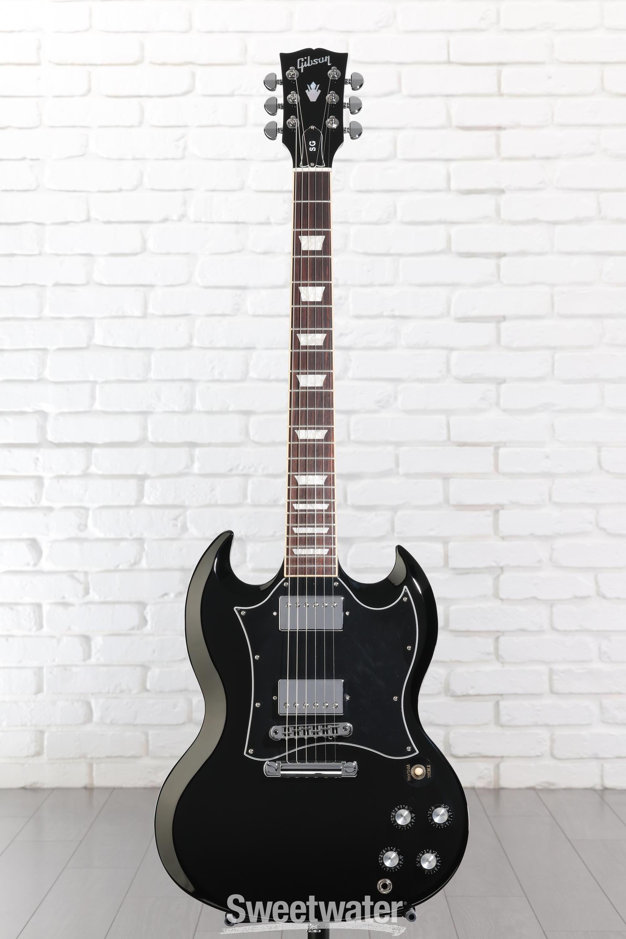 Immortalized by Santana at Woodstock and smashed onstage by Townshend, the Gibson SG is a rock icon. Gibson’s Nashville-made SG Standard is the real deal, arming you with a pair of toneful humbuckers, a rounded-profile neck, and a silky Plek’d rosewood fretboard with action that’s almost nonexistent. The Gibson SG’s weight won't be a problem as its lightweight mahogany body is comfortable and won't slow you down from playing all night. And the nitro finish looks and feels luscious while enhancing the tone of this legendary solidbody electric guitar. Own your piece of rock history: the Gibson SG Standard.