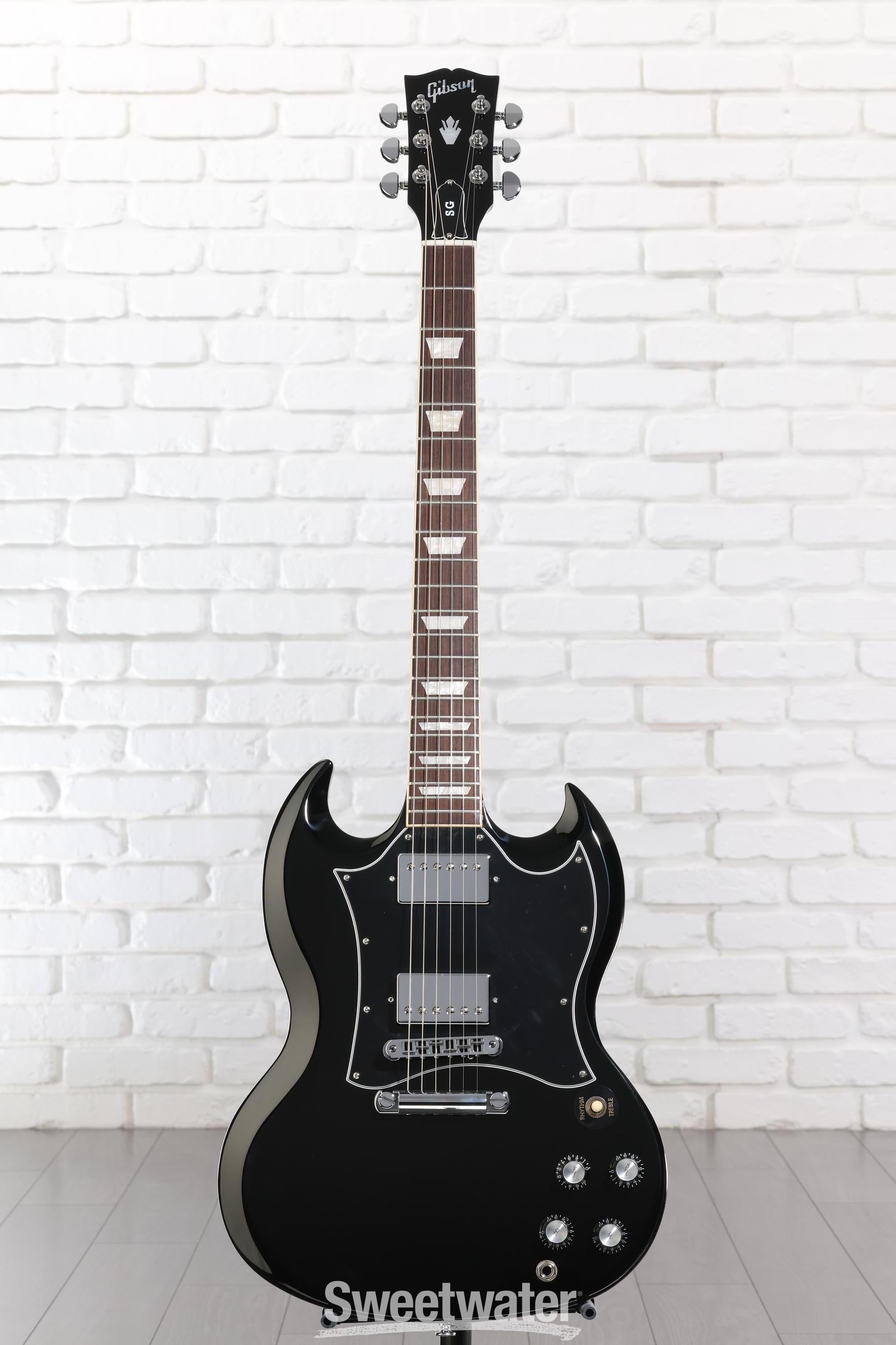 Immortalized by Santana at Woodstock and smashed onstage by Townshend, the Gibson SG is a rock icon. Gibson’s Nashville-made SG Standard is the real deal, arming you with a pair of toneful humbuckers, a rounded-profile neck, and a silky Plek’d rosewood fretboard with action that’s almost nonexistent. The Gibson SG’s weight won't be a problem as its lightweight mahogany body is comfortable and won't slow you down from playing all night. And the nitro finish looks and feels luscious while enhancing the tone of this legendary solidbody electric guitar. Own your piece of rock history: the Gibson SG Standard.