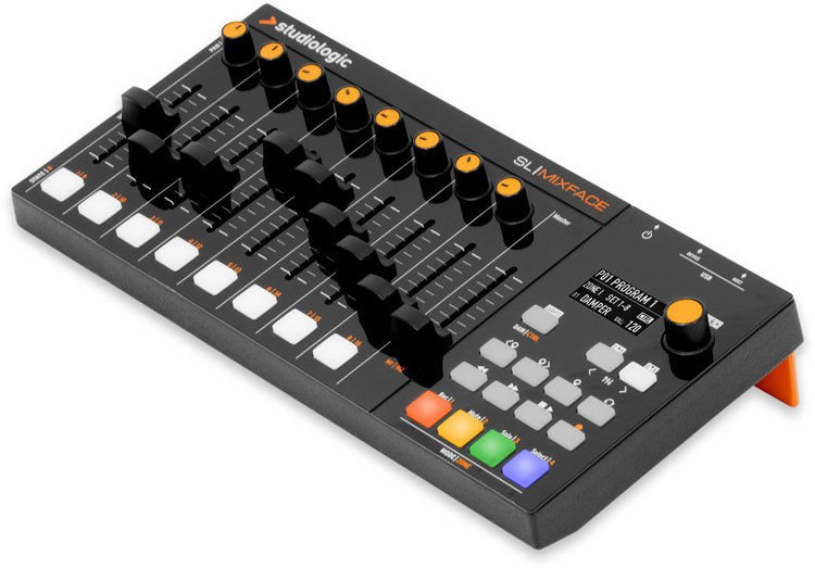 The SL Mixface is designed for integration with Studiologic's SL controller line, greatly expanding its control capabilities. Its magnetic system sticks to any controller keyboard with a metal top deck, making the Mixface a physical extension of the control set. Simply plug Mixface into an SL keyboard, and it gives you control over four layers on the fly.