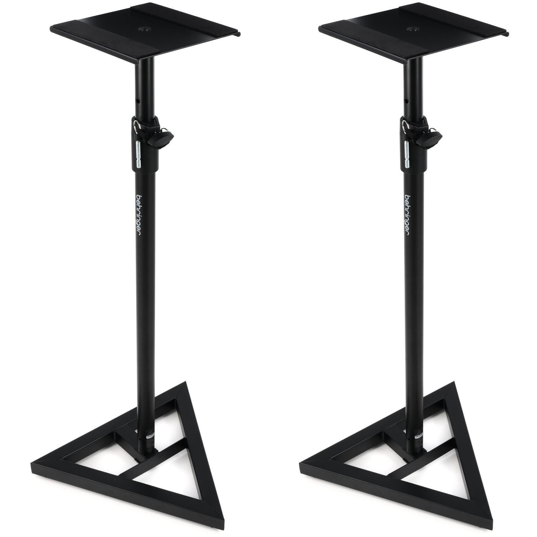 The Behringer SM5001 studio monitor stand puts you in prime position to nail your mix and immerse yourself in any multimedia experience. The SM5001 is an adjustable monitor stand that sits nicely in a corner or along a wall without hogging all your floor space. Its adjustable height situates your ears in the sweet spot of a mix, allowing you to make accurate mix decisions and hear detail in your monitors or hi-fi speaker like never before. The Behringer SM5001 monitor stand's 9-inch metal speaker platform features a soft, rubberized padding that holds speakers in place once you've got your sweet spot established. This platform supports speakers up to 55 pounds in weight, which is enough support to keep small- to medium-sized nearfields and bookshelf speakers from wobbling, shifting, or toppling through use. Whether you're a gamer, a cinephile, or a mix engineer, you'll find new ways to enjoy your media with the Behringer SM5001 monitor stand from Sweetwater. Each sold separately.