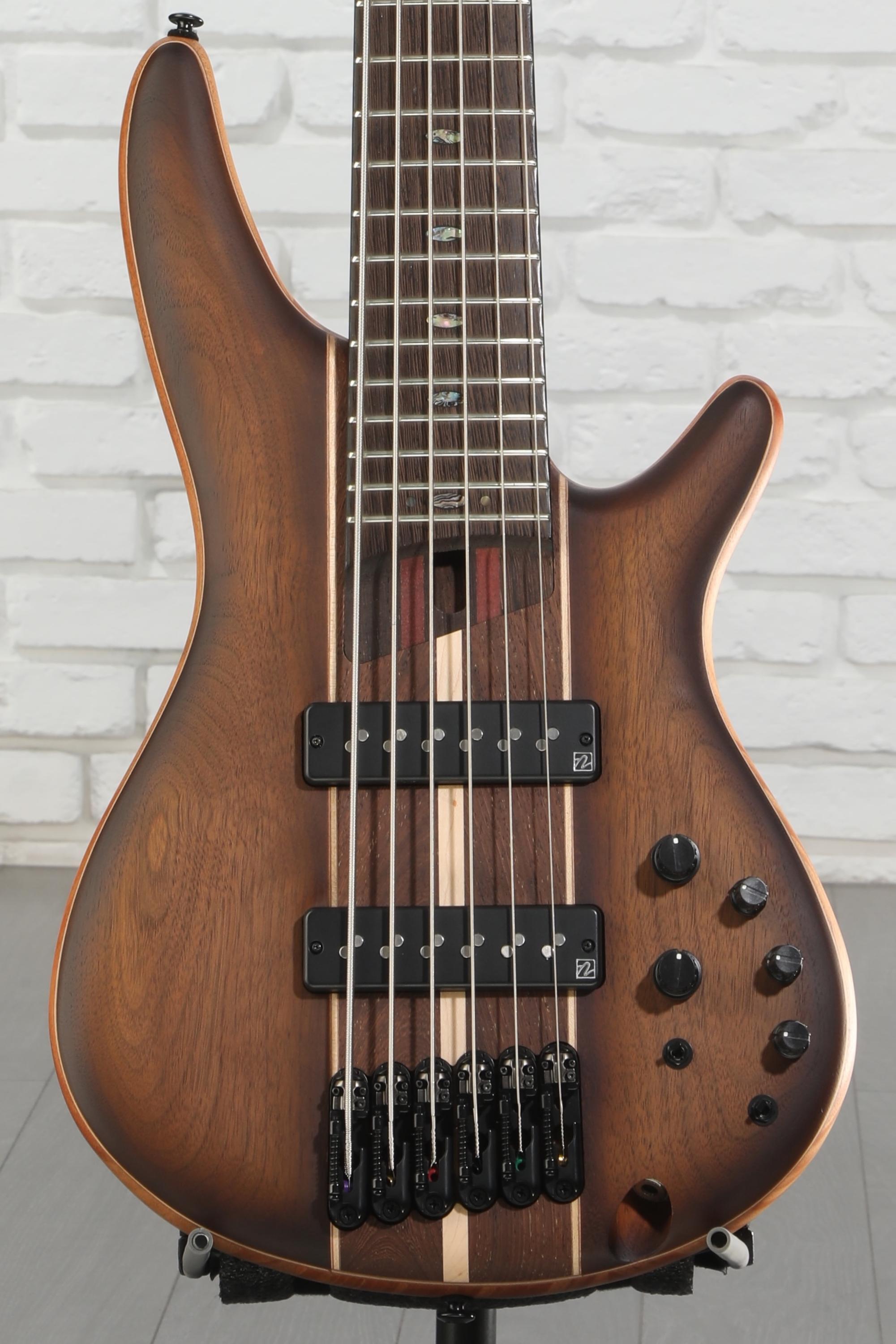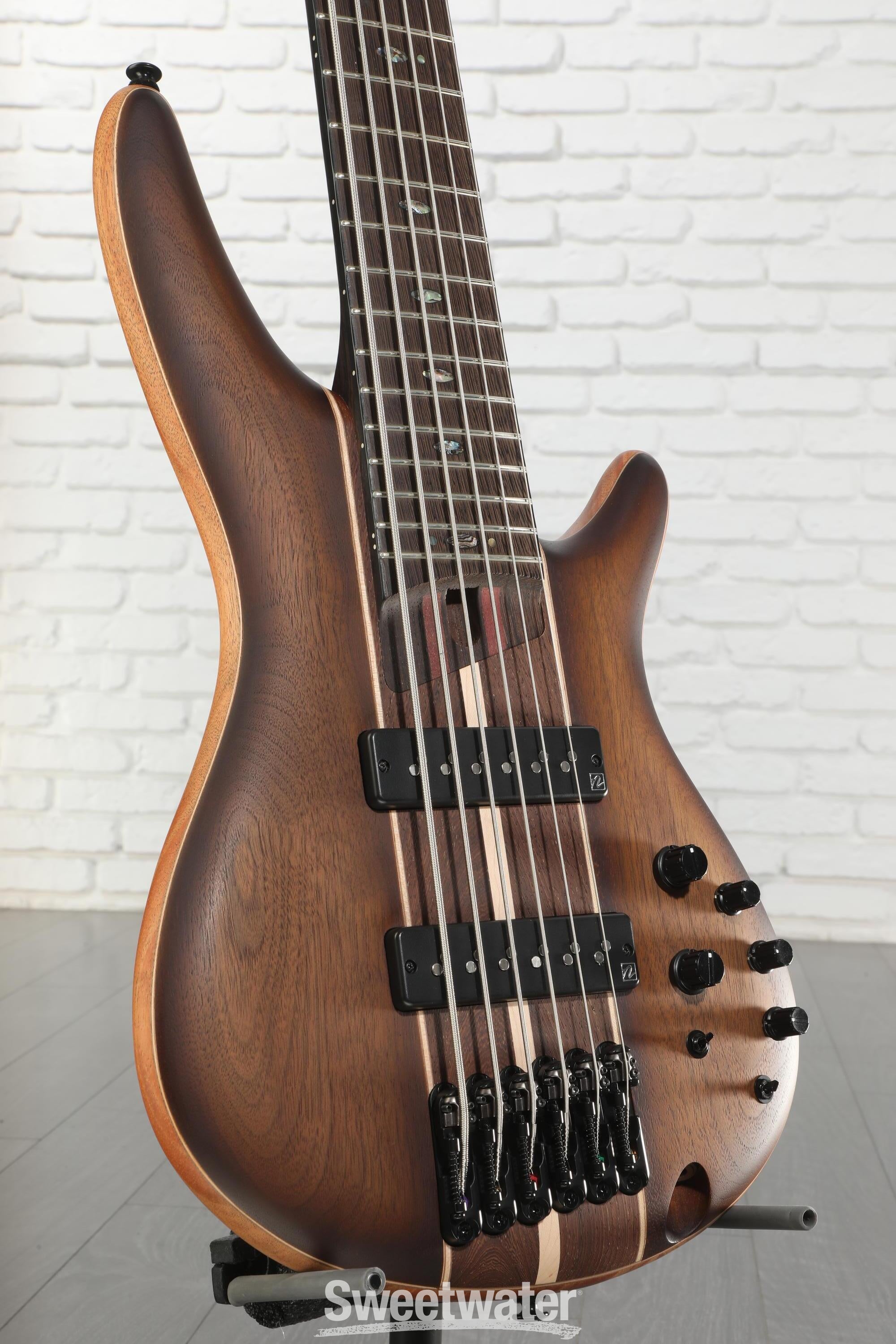 We're fortunate to get our hands on some of the finest instruments available today, and we can confidently say that the Ibanez Premium SR1356B 6-string electric bass guitar punches above its price range in every way. Sporting sleekly contoured African mahogany body, gorgeous walnut/panga panga/maple top, rock-solid 5-piece panga panga/purpleheart neck, and bound panga panga fingerboard, the SR1356B is a boutique-quality instrument with flawless playability. That quality is borne out by its pair of aggressive Nordstrand Big Single pickups, which deliver massive, roaring tone infused with monumental sustain. The 5-piece neck is strong and sturdy, with premium tuners on one end and a Mono-rail bridge at the other. Custom Ibanez electronics with 3-band EQ complete the setup.