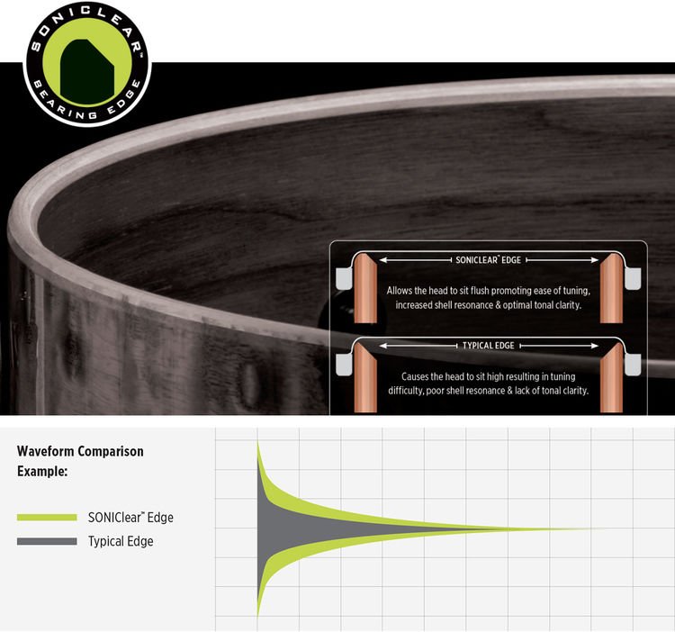 • SONIClear bearing edges with Power Hoops provide a flatter seating for drumheads to help maximize tone and tuning range