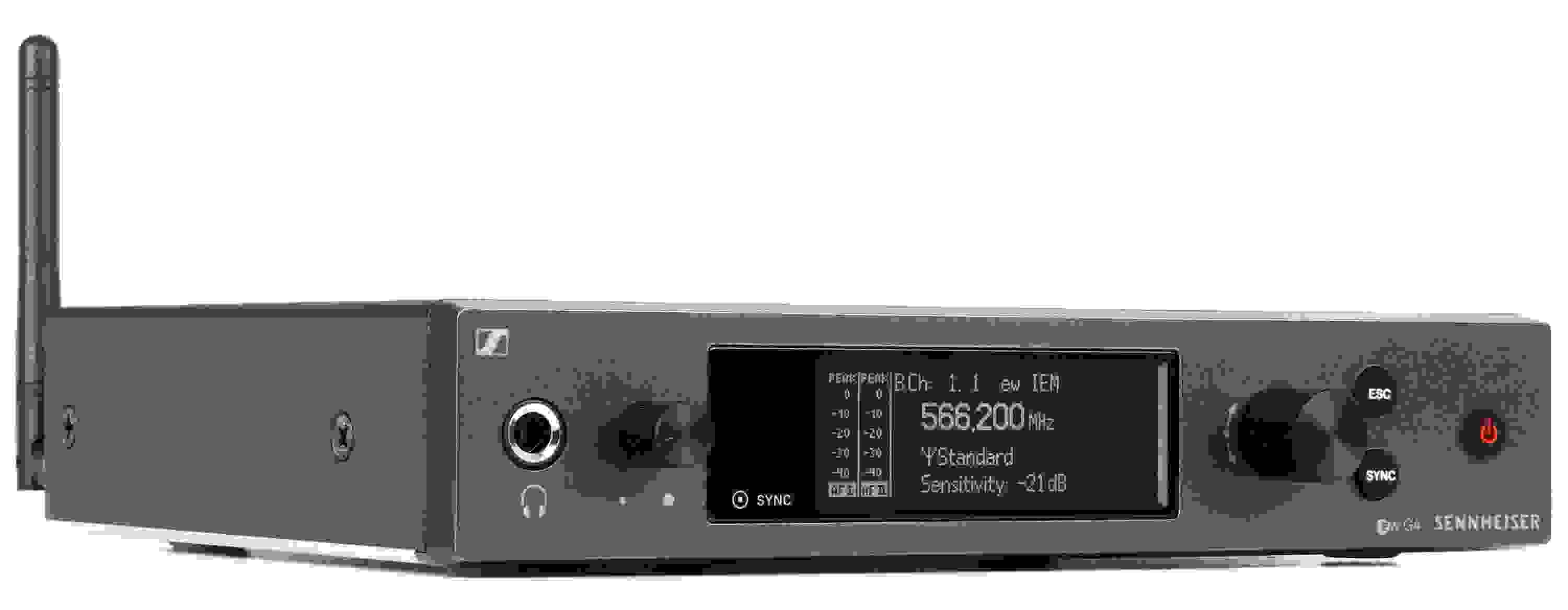 To perform your best, you need to hear yourself clearly. That's where the Sennheiser SR IEM G4 comes in — and you get the added benefits of a wireless in-ear system. You can hear anywhere on stage and there's less stage noise. Beyond that, in-ears aren't prone to feedback. The SR IEM G4 is a high-quality rackmountable transmitter that operates up to 61 channels with up to 42MHz of bandwidth and 1,680 selectable frequencies. With the SR IEM G4, you'll enjoy increased bandwidth and power over previous generations, a transmission range up to 330 feet, and backward compatibility with previous evolution systems.