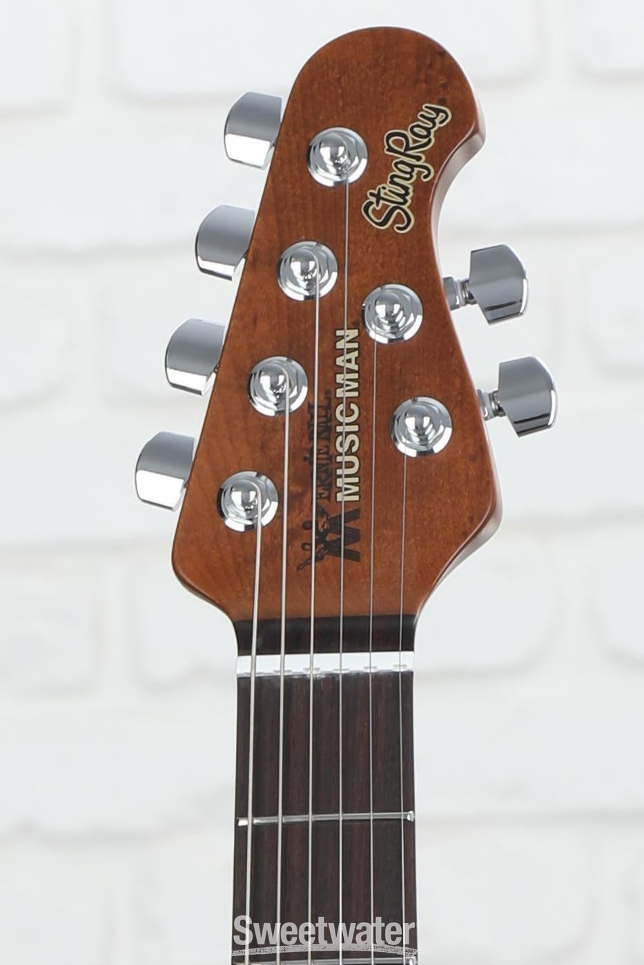 The StingRay RS’s asymmetrical neck carve is designed around the contour of your hand. It’s full and round at the lower strings, which is comfortable for full chording, and it thins out behind the higher strings for fast and fluid single-note playing. The set of Schaller locking tuners keeps you in tune, even under heavy vibrato use. Plus, the compensated nut ensures enhanced intonation accuracy across the length of the fingerboard. Ask any guitarist at Sweetwater, and they’ll tell you that Ernie Ball Music Man guitars are gig-ready instruments with long-term reliability.