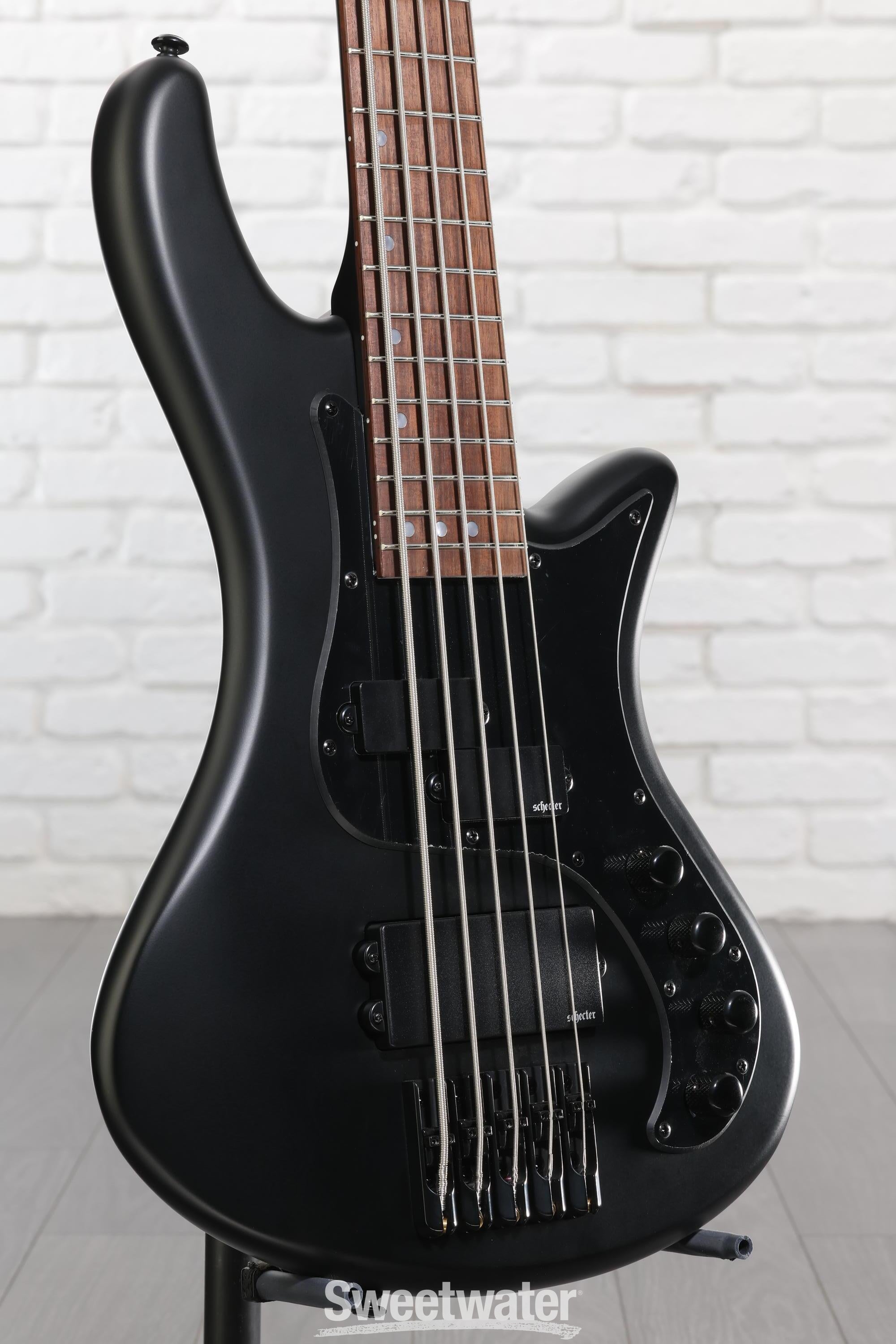 One of the great things in general about Schecter's more affordable basses is the hardware. Unable to source an affordable 5-string bridge that still delivers the performance and stability serious guitarists demand, Schecter simply decided to create one. This Schecter S-Tek bridge gives you the stability you need plus a massive range of intonation. Also a nice surprise, the sealed and permanently lubricated 17:1 ratio tuning machines on the Schecter Stiletto Stealth let you stay in tune like a pro.