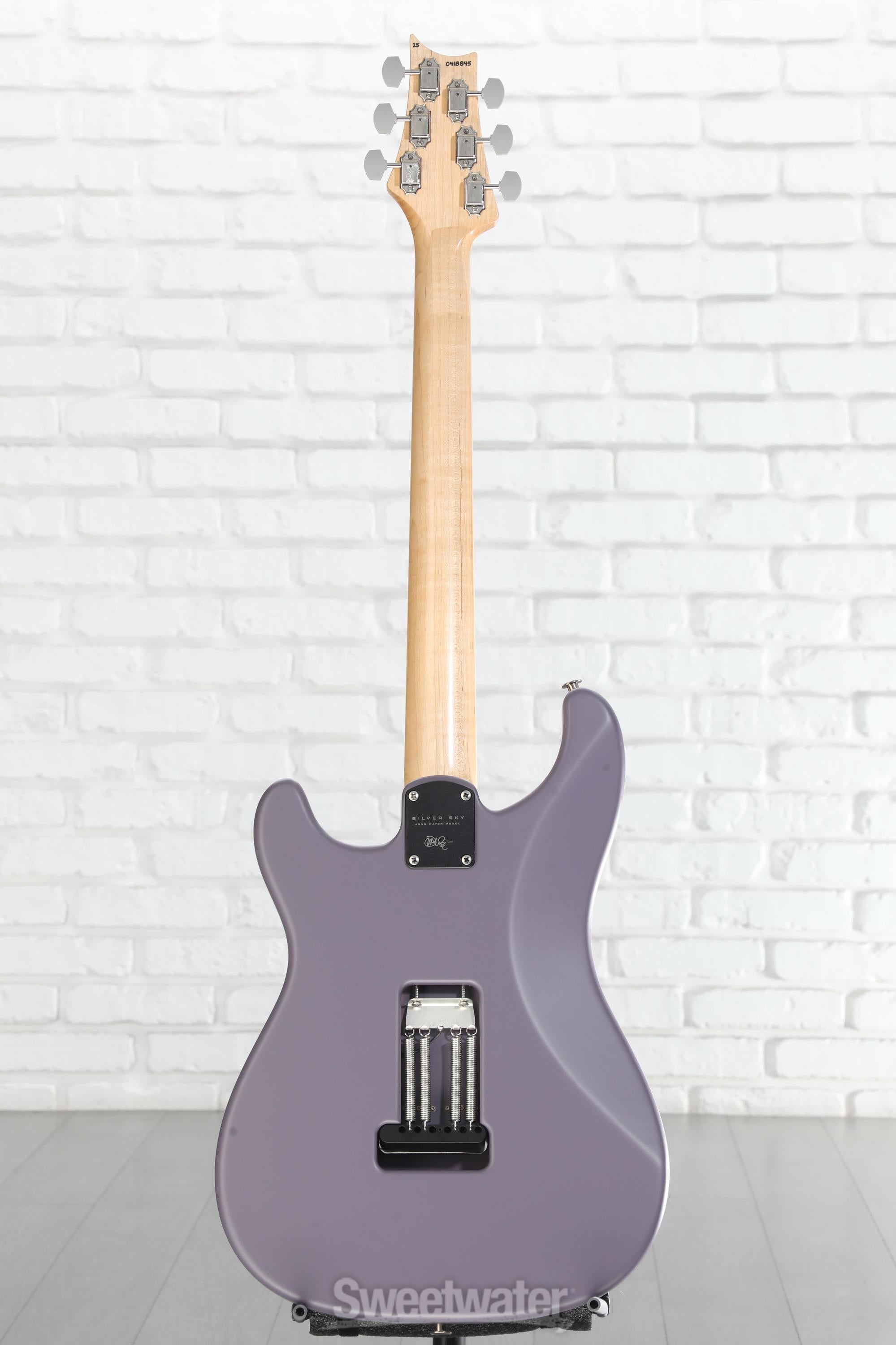 The PRS Silver Sky was designed by Paul Reed Smith and built to John Mayer's specifications. This vintage-inspired, swamp ash-bodied 6-string boasts a familiar shape with an eye-catching, contrasting tone in its cutaway scoop. Its 635JM-R neck carve, scale length, and fingerboard radius were modeled after John's early-'60s instruments; however, a modified PRS-style headstock and locking tuners propel it firmly into the twenty-first century. Park this axe in front of any tube amp, and its trio of sweet-sounding 635JM single-coil pickups will churn out glassy, musical tones with excellent note definition. Beyond that, the Silver Sky hosts a PRS proprietary nut, molded metal jack plate, retooled knobs, custom fret wire, and PRS's double-action truss rod, ensuring true and polished playability with an unmistakably professional feel.