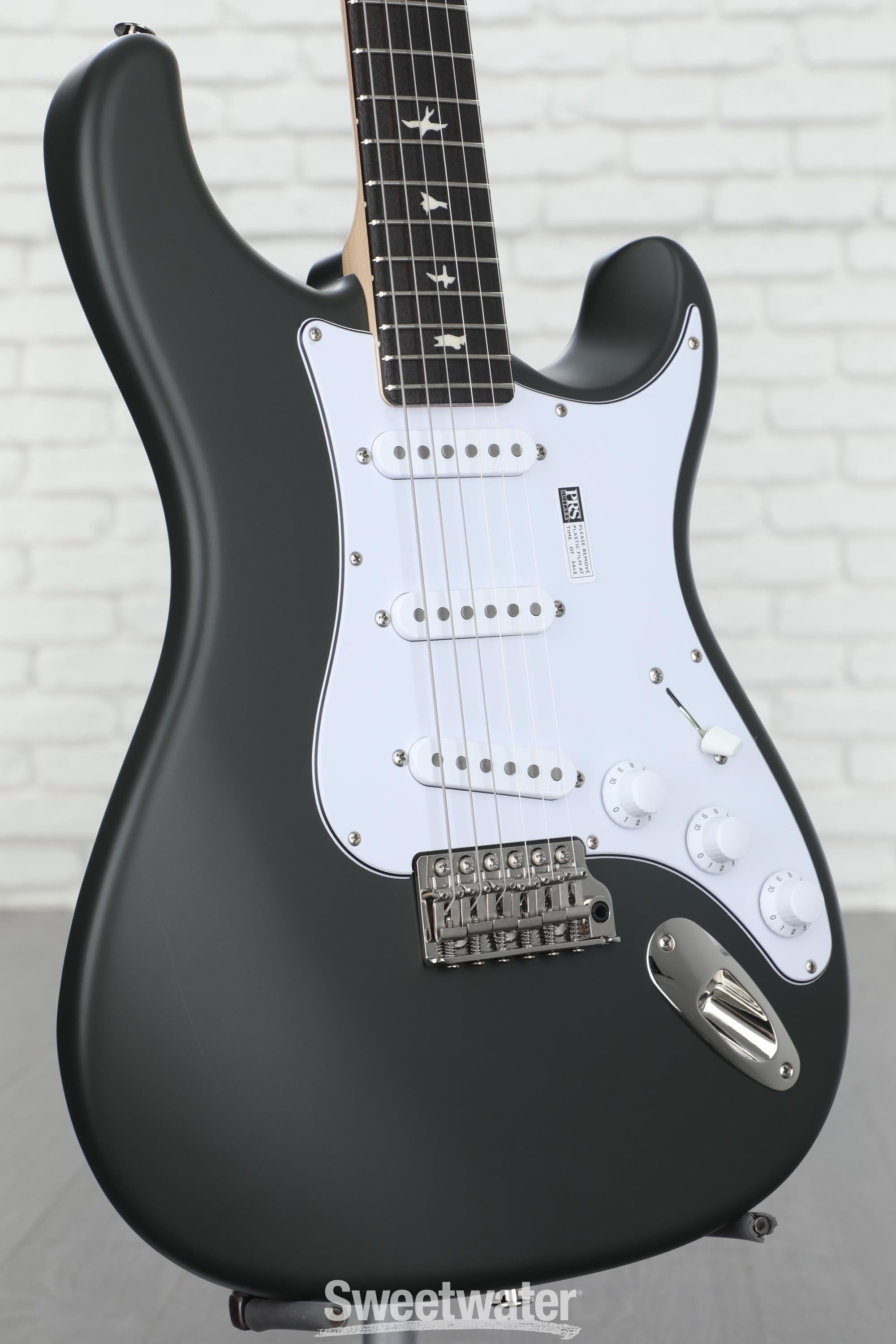 The PRS Silver Sky was designed by Paul Reed Smith and built to John Mayer's specifications. This vintage-inspired guitar boasts a familiar shape with an eye-catching contrasting tone in its cutaway scoop. Its neck carve, scale length, and fingerboard radius were modeled after John's early-'60s instruments; however, a modified PRS-style headstock and locking tuners propel it firmly into the twenty-first century. Park this axe in front of any tube amp, and its sweet-sounding single-coil pickups will churn out glassy, musical tones with excellent note definition. Beyond that, the Silver Sky includes a bone nut, molded metal jack plate, retooled knobs, custom fret-wire, and PRS's double-action truss rod.