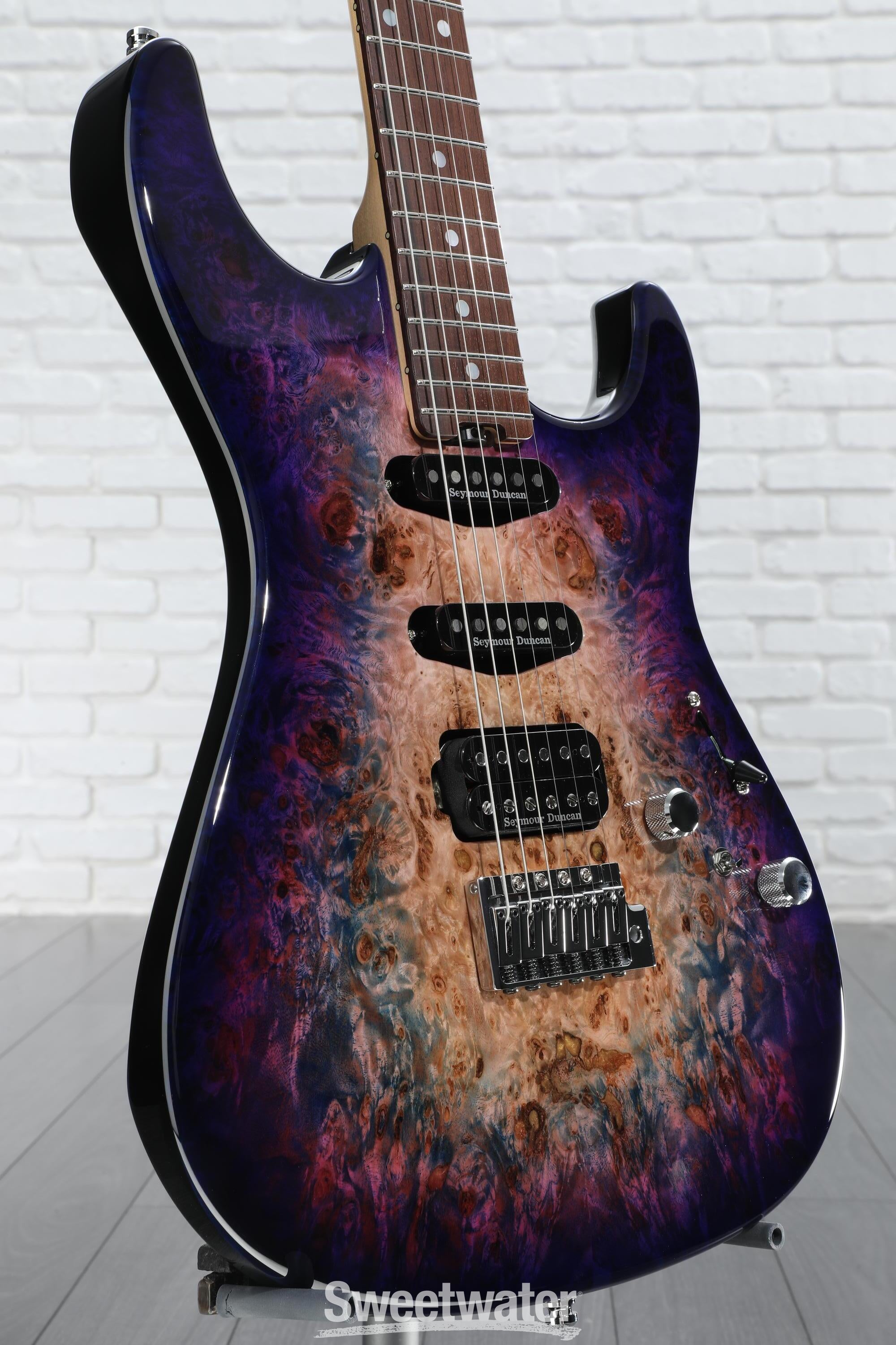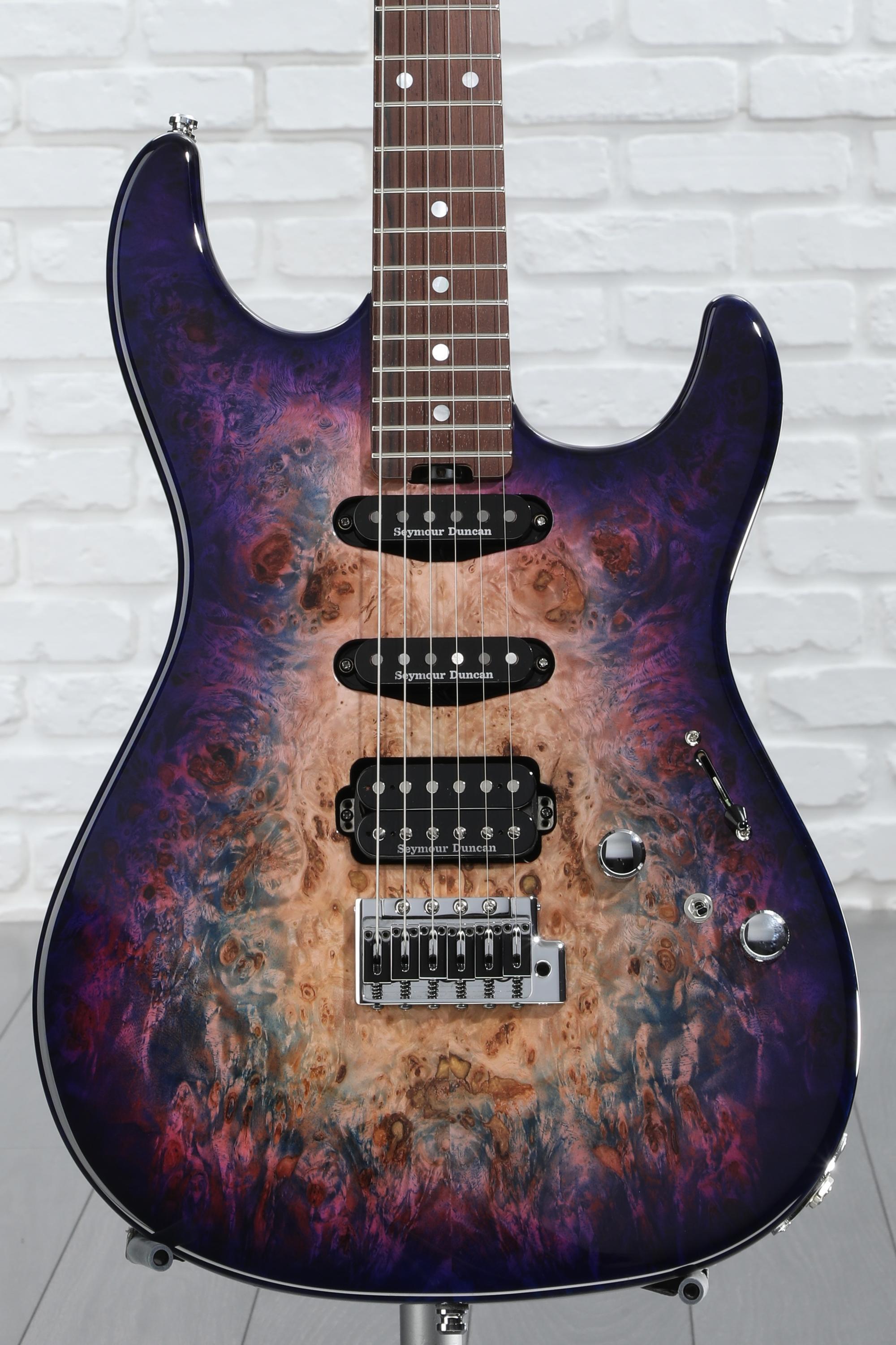The essence of ESP’s earliest guitar creations has been captured and elevated with the ESP Original Snapper CTM — a handcrafted pinnacle of design. Each Original Snapper CTM is hand built by legendary luthiers at ESP’s Custom Shop in Japan, a rare honor for a production guitar. The Snapper CTM features a stout and resonant swamp ash body, an eccentric burled poplar top, three hot Seymour Duncan pickups, and a rosewood-on-maple neck. With ESP’s “Thin U” profile, this neck is quite fast and comfortable, while the electronics offer three versatile humbuckers (one standard size and two stacks) with an impressive spread of capacitance and pickup mix options beyond just 5-way selection. The result is the versatility of a HSS guitar with a little extra beef, grit, and tweakability — so you can be sure it’s ready for anything you throw at it!
