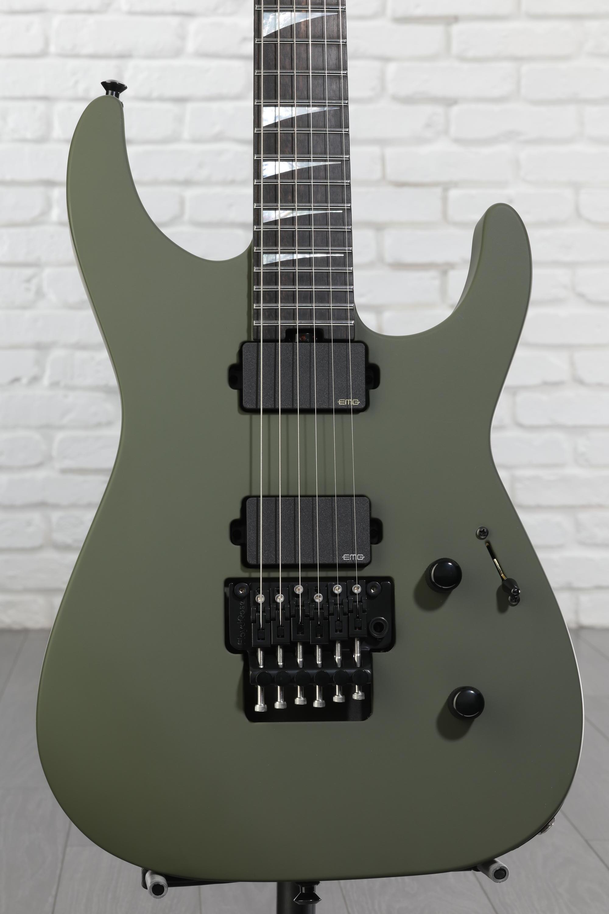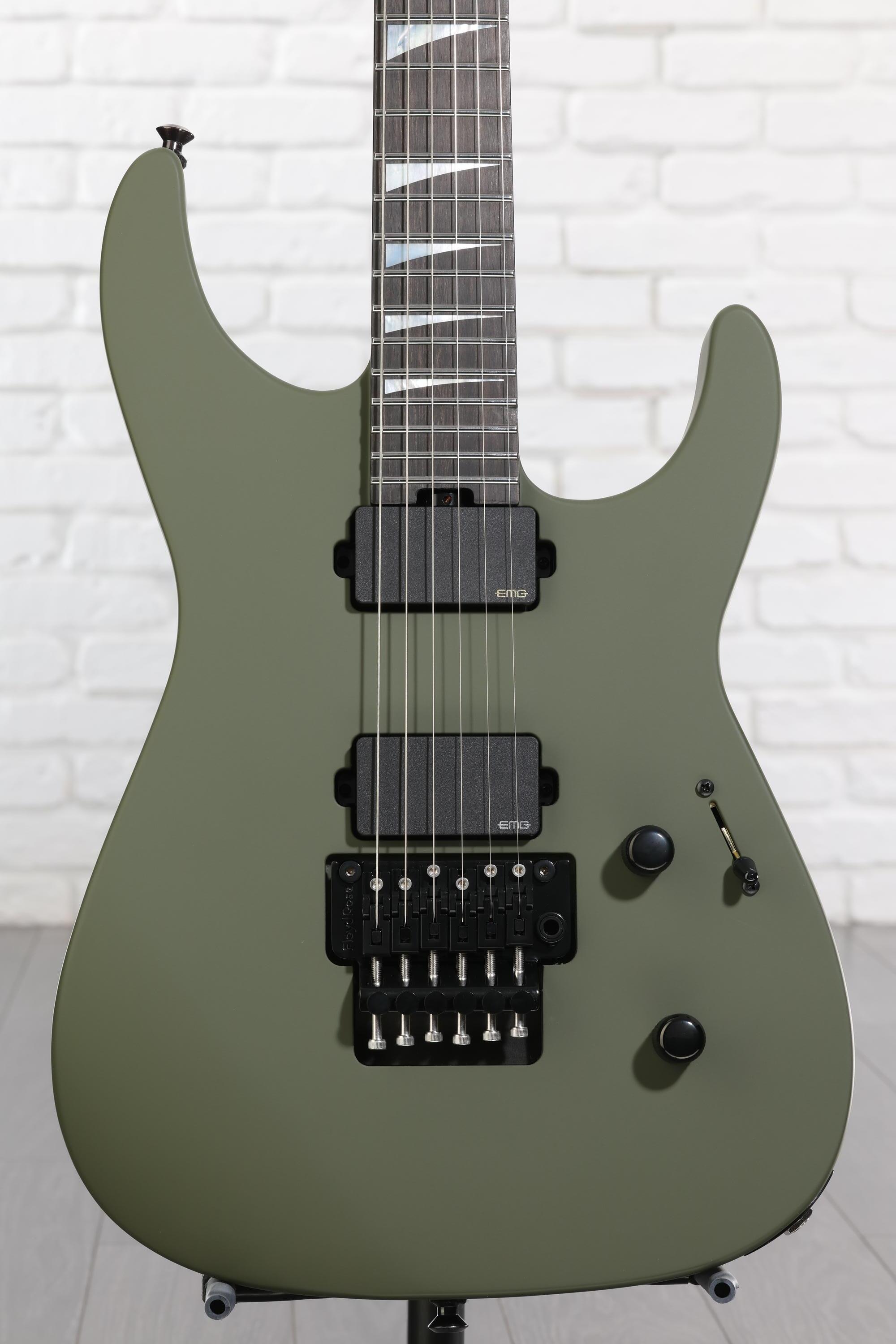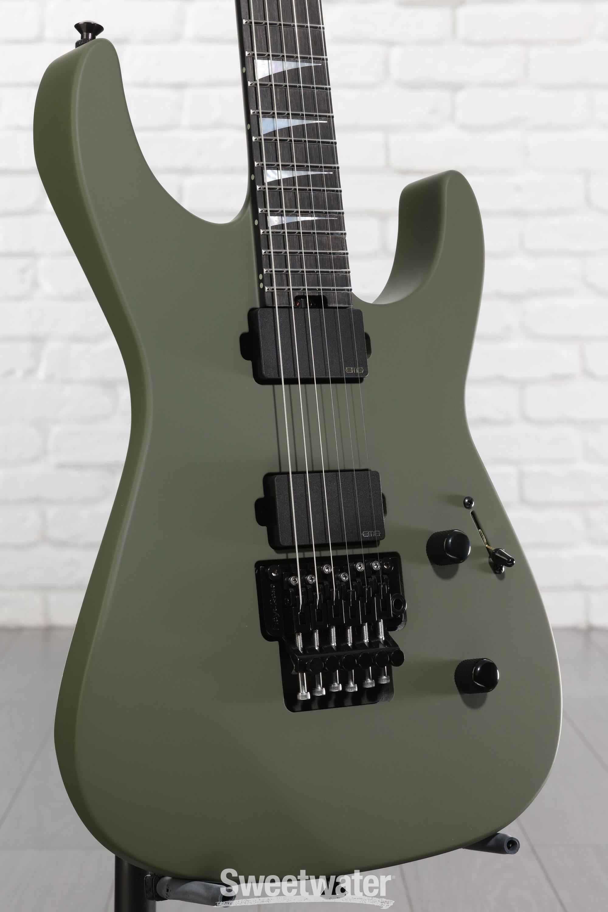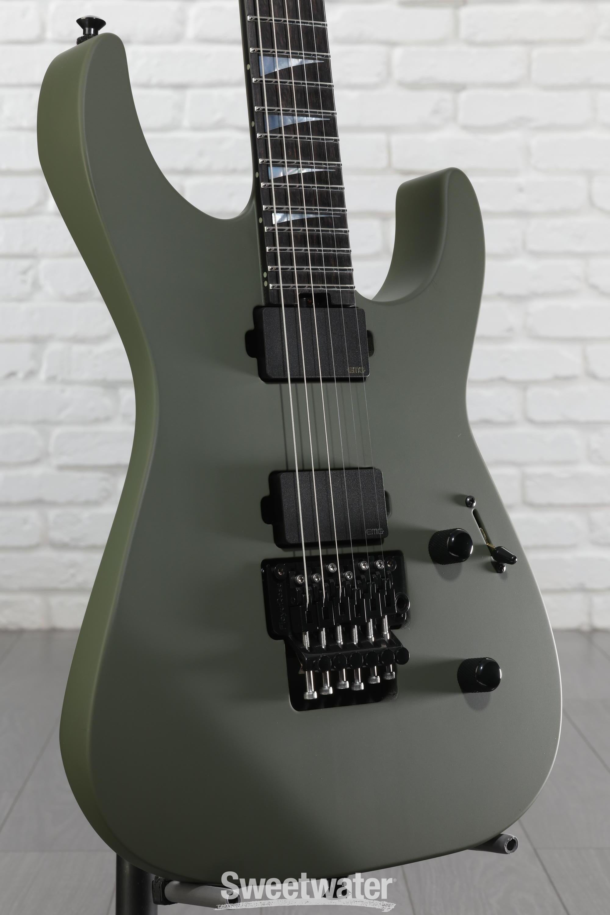 Prepare to achieve high-gain heroics! The Jackson American Series Soloist offers classic metal tones, a swift neck, and a luxurious ebony fingerboard. Everything revolves around a neck-through maple neck carved into Jackson’s signature Speed Neck profile. Two alder body wings are attached to the neck for a balanced tonal profile. The neck-through construction technique makes the instrument more stable and boosts resonance. Plug in, and the EMG 81 and 85 pickups instantly deliver the kind of high-output tone that makes them an enduring favorite among metal players. Finally, the Floyd Rose 1500 Series double-locking tremolo gives you the ability to perform wild pitch bending without falling out of tune. Ready to step up to the next level? Get a Jackson American Series Soloist and vault your chops into the stratosphere.