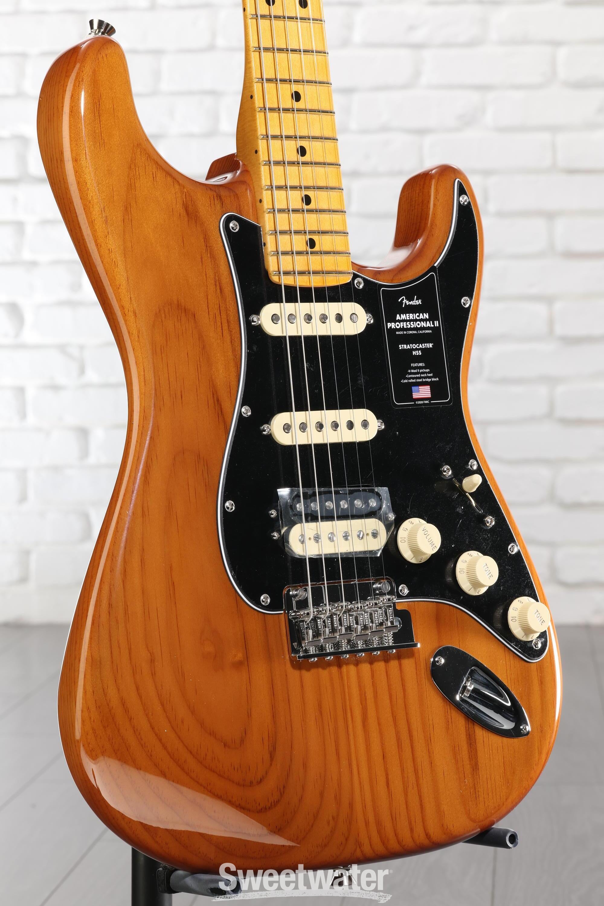 The Fender American Professional II Stratocaster HSS offers notable upgrades from its previous version. The alder body is loaded with brand-new V-Mod II pickups for the ultimate in single-coil tone. A Double Tap humbucker located in the bridge is ideal for powerful solos and lead lines. You also get upgraded hardware from headstock to tuners, including a contoured heel for playing comfort. Enhanced finishing techniques and Fender's famous dedication to quality craftsmanship round out the design. The Fender American Professional II Stratocaster HSS is a vintage-voiced instrument that's ready to conquer stages — and it's right here at Sweetwater.