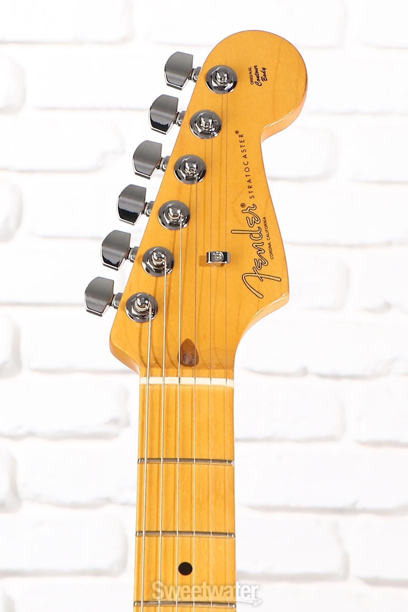 After the wild success of the original American Professional Stratocaster, Fender's team of designers dedicated themselves to improving on the design. The resulting instrument, the American Professional II Stratocaster, features a number of improvements and upgrades that push the classic design to new heights. V-Mod II single-coil pickups and a Double Tap humbucker give you classic Strat sparkle with unbelievable clarity. The upgraded 2-point tremolo bridge has a cold-rolled steel block, which helps boost sustain and adds a touch of brightness. Factor in the all-new "Super-Natural" neck finish, and the Fender American Professional II Stratocaster sets the tone for what a professional level instrument should look, sound, and feel like.