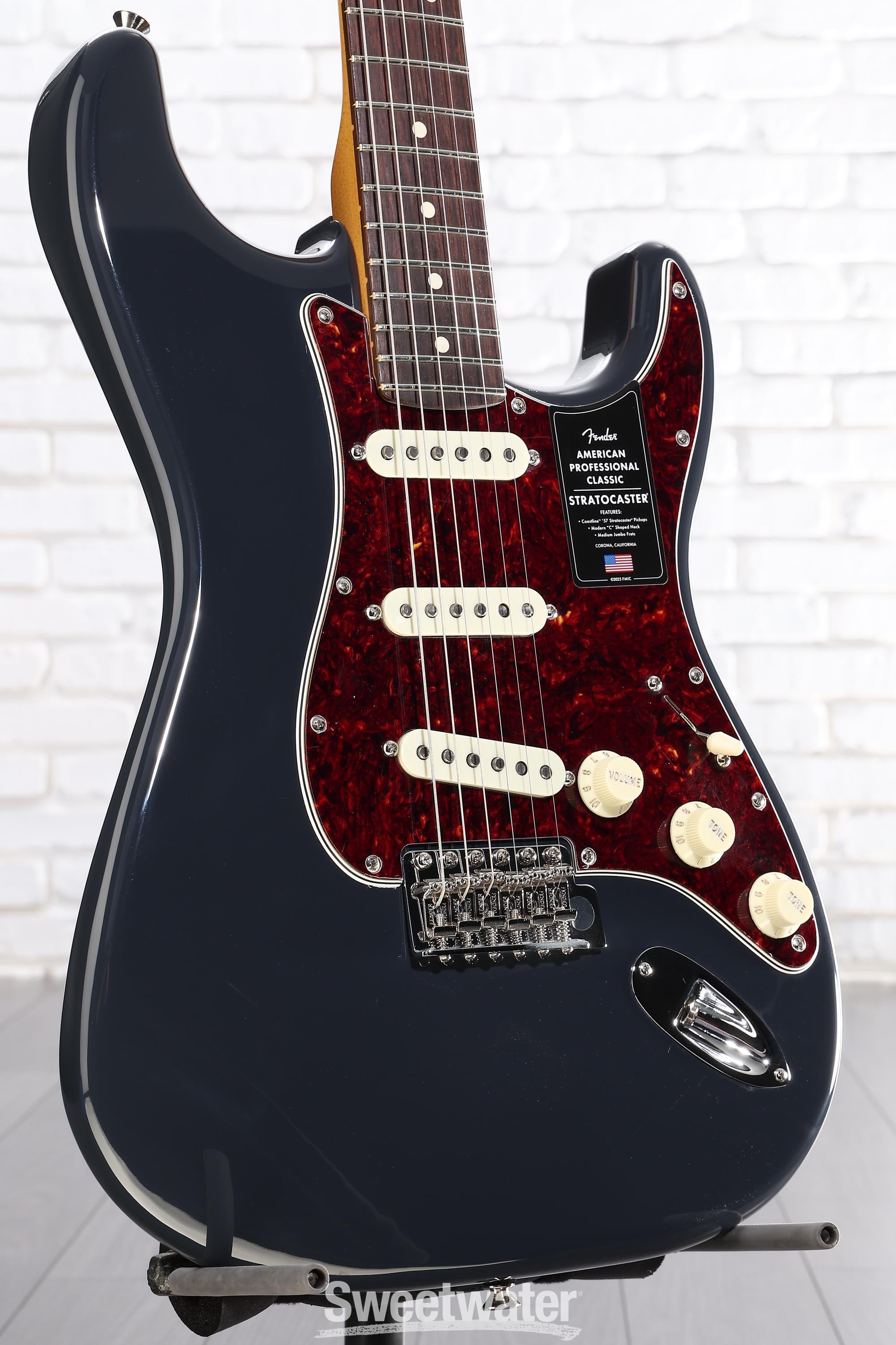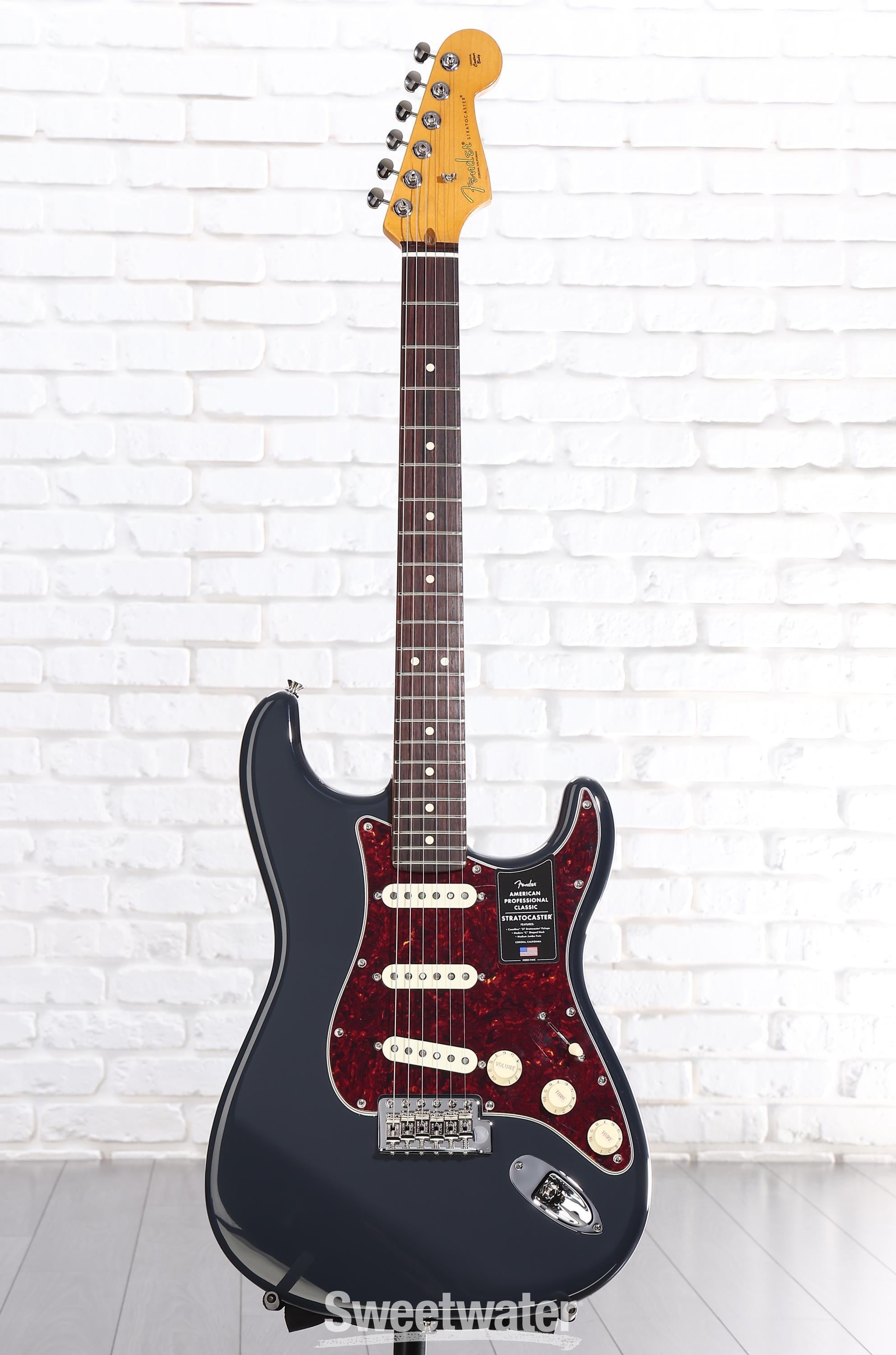 A delightful fusion of vintage charm and modern execution, the Fender American Professional Classic Stratocaster offers a premium Strat playing experience with tone to match. Its solid alder body flaunts familiar Strat contours, imbuing it with the soul of a golden-era Fender, evolved for today's players. The satin-finished maple neck, which sports a Modern C shape, gives this solidbody electric guitar an eminently satisfying, hand-filling feel. Meanwhile, the 9.5-inch-radius, 22-fret fingerboard provides you with a revved-up platform for lightning-fast playability. No matter what you plug the American Professional Classic Strat into, you'll revel in the depth, punch, and sparkle of its overwound, vintage-inspired Coastline '57 Stratocaster pickups, which are bolstered by Fender's Greasebucket Tone Circuit. You also get Fender Staggered ClassicGear tuning machines and a vintage-style synchronized tremolo, certifying rock-solid stability — even under demanding playing conditions. Finally, a custom-faded finish, a 4-ply tortoiseshell pickguard, and aged plastic parts give this Strat a spotlight-stealing look that's impossible to ignore. Are you searching for a pro-grade instrument with vintage aesthetics and modern performance? If so — take it from Sweetwater — the American Professional Classic Stratocaster is calling your name.