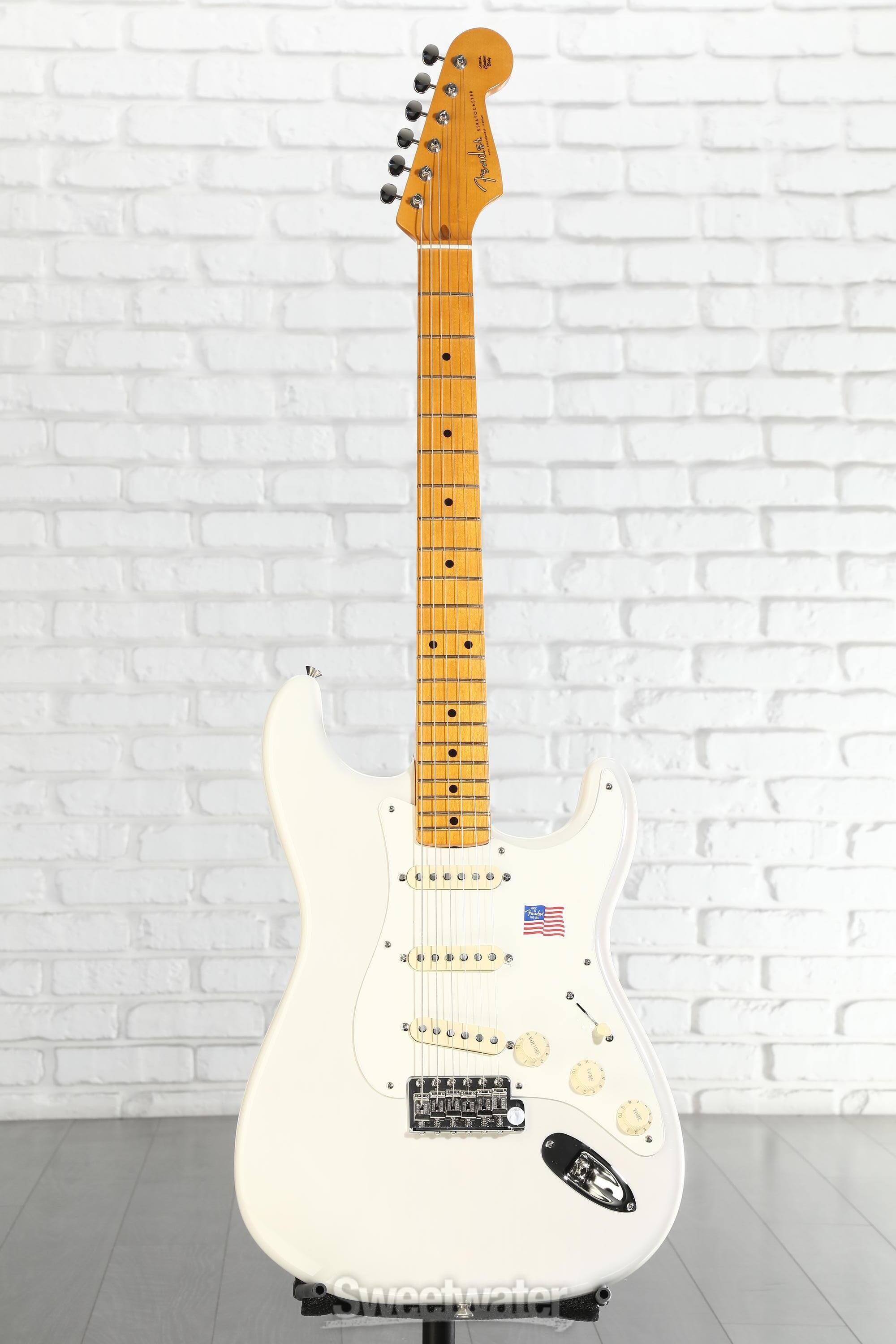 The Eric Johnson Signature Model Fender Stratocaster guitar is built from some of the finest materials available. The light 2-piece alder body is dressed in a very thin nitrocellulose lacquer finish, and the 1-piece quartersawn maple neck sports a 12-inch fingerboard radius, 21 highly polished frets, and a soft V-shaped neck profile.