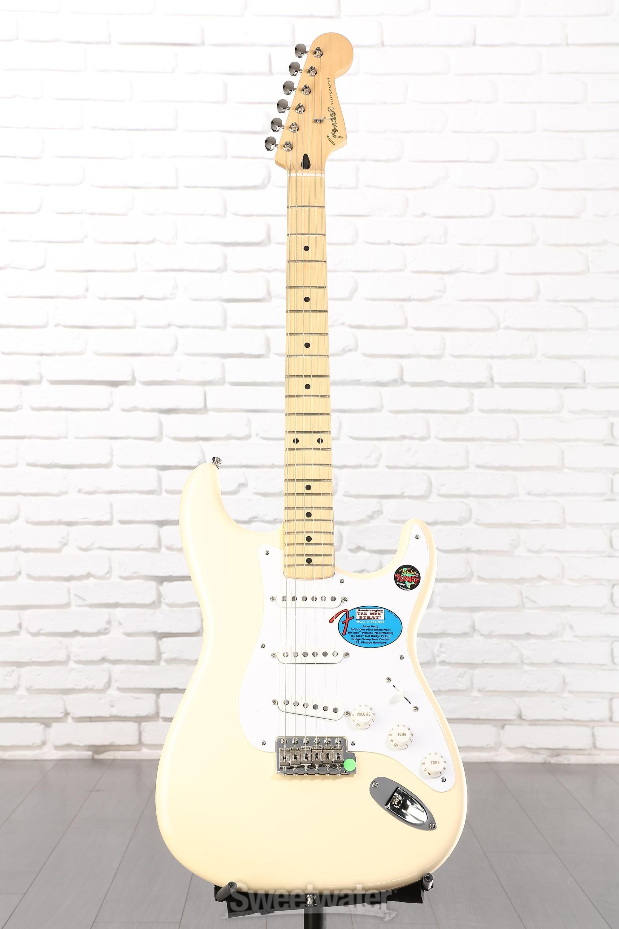 When you think of the classic, searing hot roadhouse blues Strat sound, that's exactly the tone Jimmie Vaughan prefers. It's a bit dirty — though not to the point of true distortion — and its bite is as sharp as razor wire! If that's the sound you're after and you aren't particularly keen on emptying your bank account to get it, then this is unquestionably the guitar for you! The Olympic White polyurethane finish gives this Strat a classic look, and the custom-contoured body makes it amazingly comfortable to play whether you're sitting or standing. The American Vintage synchronized tremolo tailpiece lets you bend notes or entire chords up or down with remarkable tuning stability. The bottom line is clear: this is a Strat that delivers the superior tone and playability you want at a price that's sure to please!