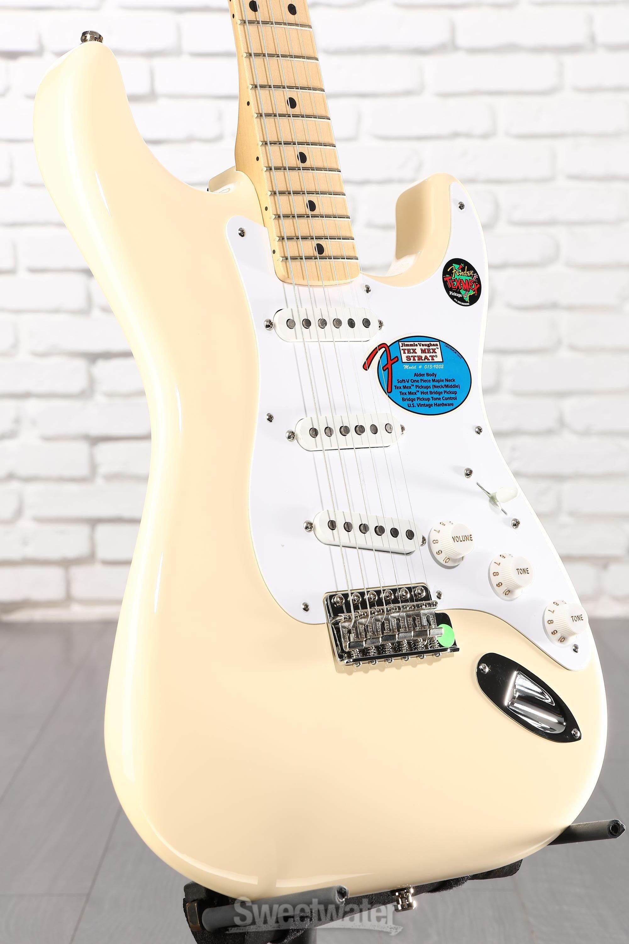 While he's not the guitar superstar that his brother the late Stevie Ray Vaughan was, Jimmie has nonetheless carved out a special place in modern music for himself with his blistering hot tone. The Jimmie Vaughan Tex-Mex Strat guitar features an alder body, a specially shaped and tinted maple neck equipped with medium-jumbo frets, vintage hardware, and a single-ply white pickguard. Single-coil Tex-Mex pickups occupy the neck and middle positions and an extra-hot Tex-Mex bridge pickup with special wiring adds just the right amount of extra spice and bite. Best of all, this Jimmie Vaughan Strat comes with a shockingly low Sweetwater price!