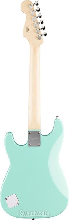 All the refined details that have made the Stratocaster one of the most legendary instruments in history can be found on your new Mini Strat. The comfortable and familiar forearm and body contours make wielding this axe a joy. Your instrument will ring true, thanks to the bright playability of its maple neck and fingerboard. Its 6-saddle hardtail bridge allows for fantastic intonation up and down the guitar's neck. Plus, the striking image cut by the Squier Mini Strat's large '60s-style headstock brings all that timeless Strat charm to the table.