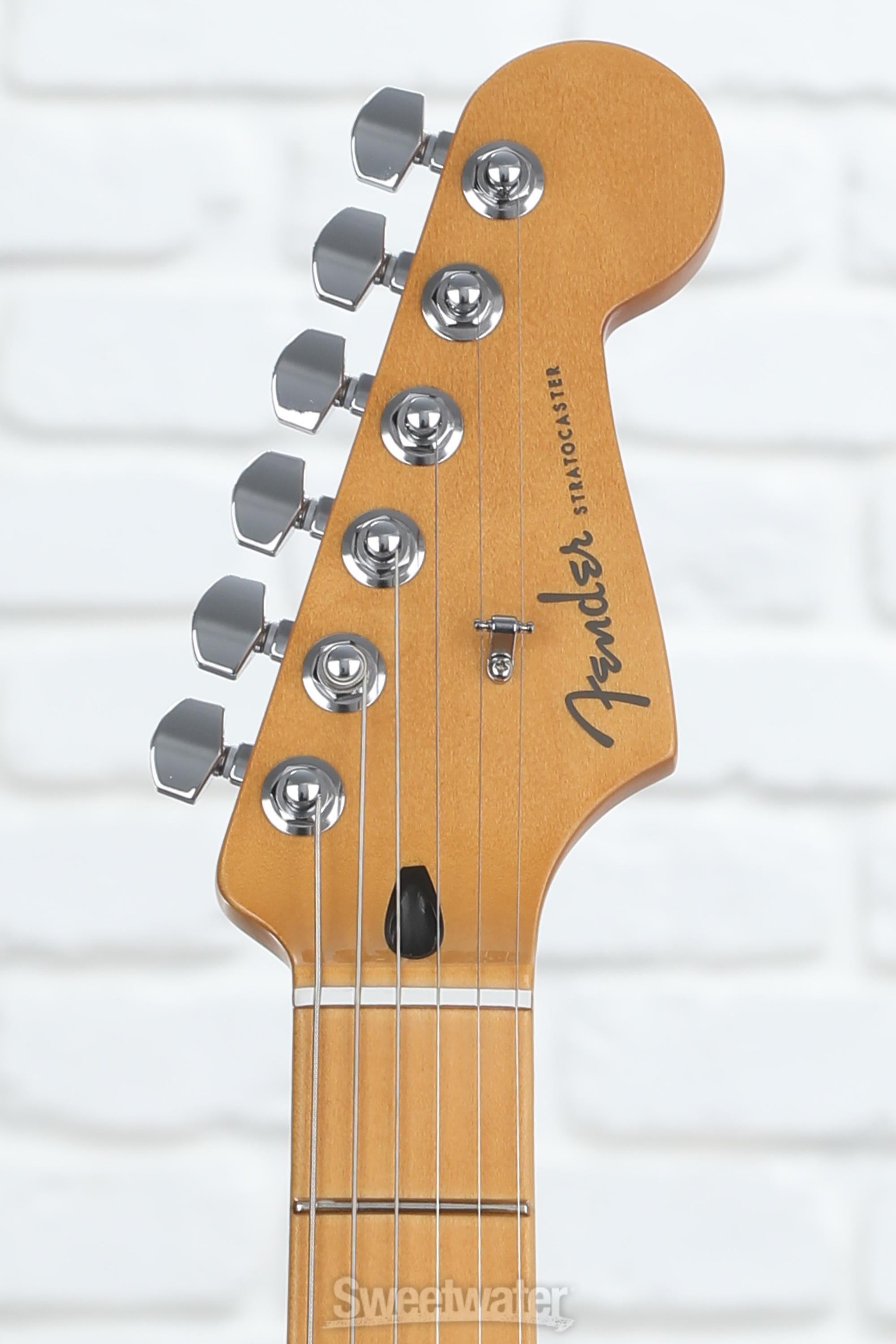Whether it's your first or 50th Fender, the Player Plus Strat is familiar in the hands. You get the standard tonewood combo of alder with maple for the neck and fingerboard, laying a solid tonal foundation with plenty of snap and smooth playability. Where the Player Plus Strat truly shines is its impressive feature set. Its Modern "C" Player Plus neck profile boasts a rolled-edge fingerboard for a comfortable worn-in feel right out of the box. Locking tuners up top make for split-second string changes while keeping everything in tune, the perfect companion for this Strat's silky-smooth 2-point synchronized tremolo. The Player Plus Strat epitomizes love at first strum — make sure to clear your schedule for the next few days!