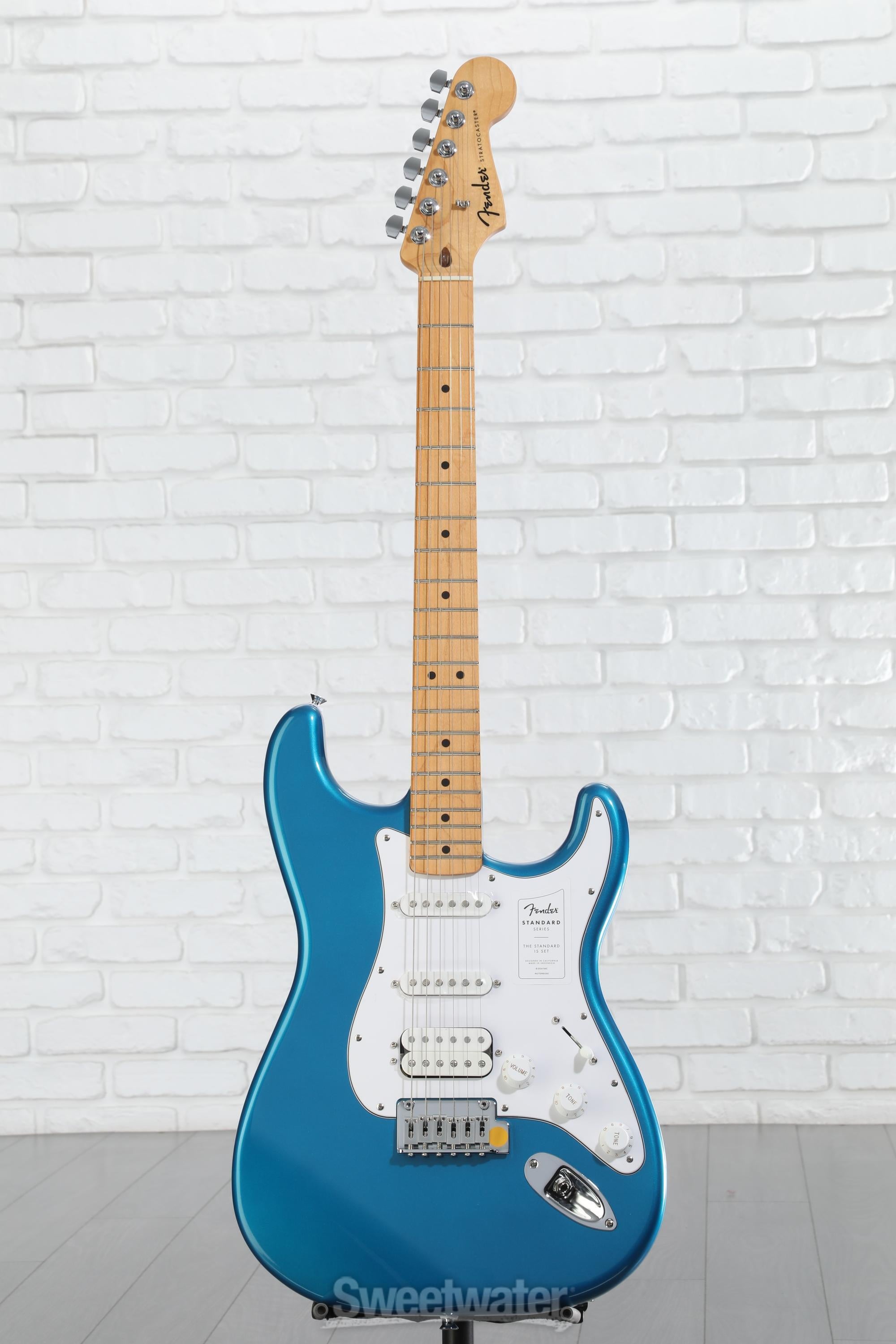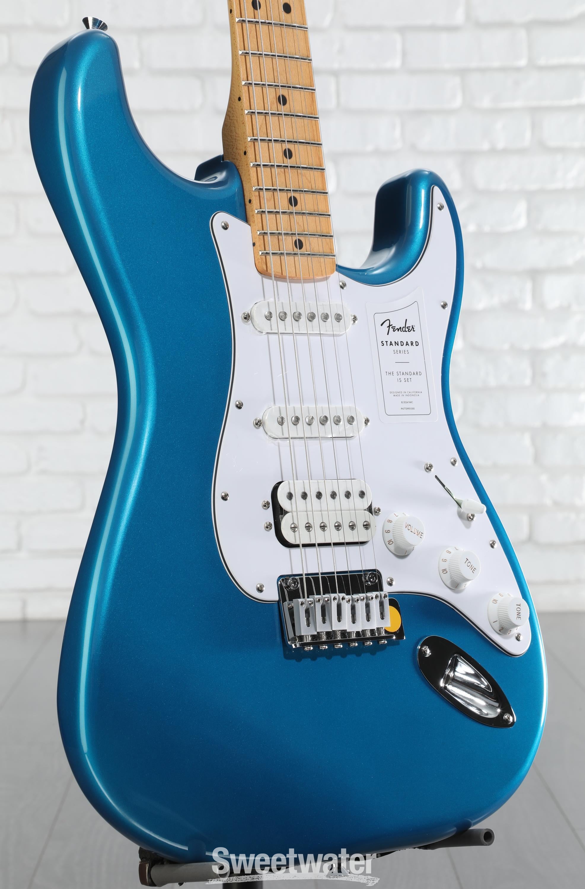 When you’re ready to experience quintessential Fender design and playability, look no further than the Fender Standard Stratocaster HSS. Built with the player in mind, the standard design allows beginners and aficionados alike to experience essential Fender features that make the brand’s guitars the first choice of so many Sweetwater guitarists. With a satin-finished and time-tested modern C-shaped neck and a 9.5-inch-radius maple fingerboard, this guitar is immensely comfortable for both chords and individually fretted notes. The Standard Single-coil Strat pickups offer the iconic snappy tone, while a high-output Standard Ceramic Humbucker lends itself to a more aggressive modern sound. Achieve patented Strat vibrato and dynamic versatility with the onboard 2-point synchronized tremolo system, complete with even tension that is easy to use and stays in tune. Whether you’re buying your first guitar or looking to add some Strat sparkle to your collection, the Standard Stratocaster offers all the playability, tonality, and style a Fender guitar can provide.