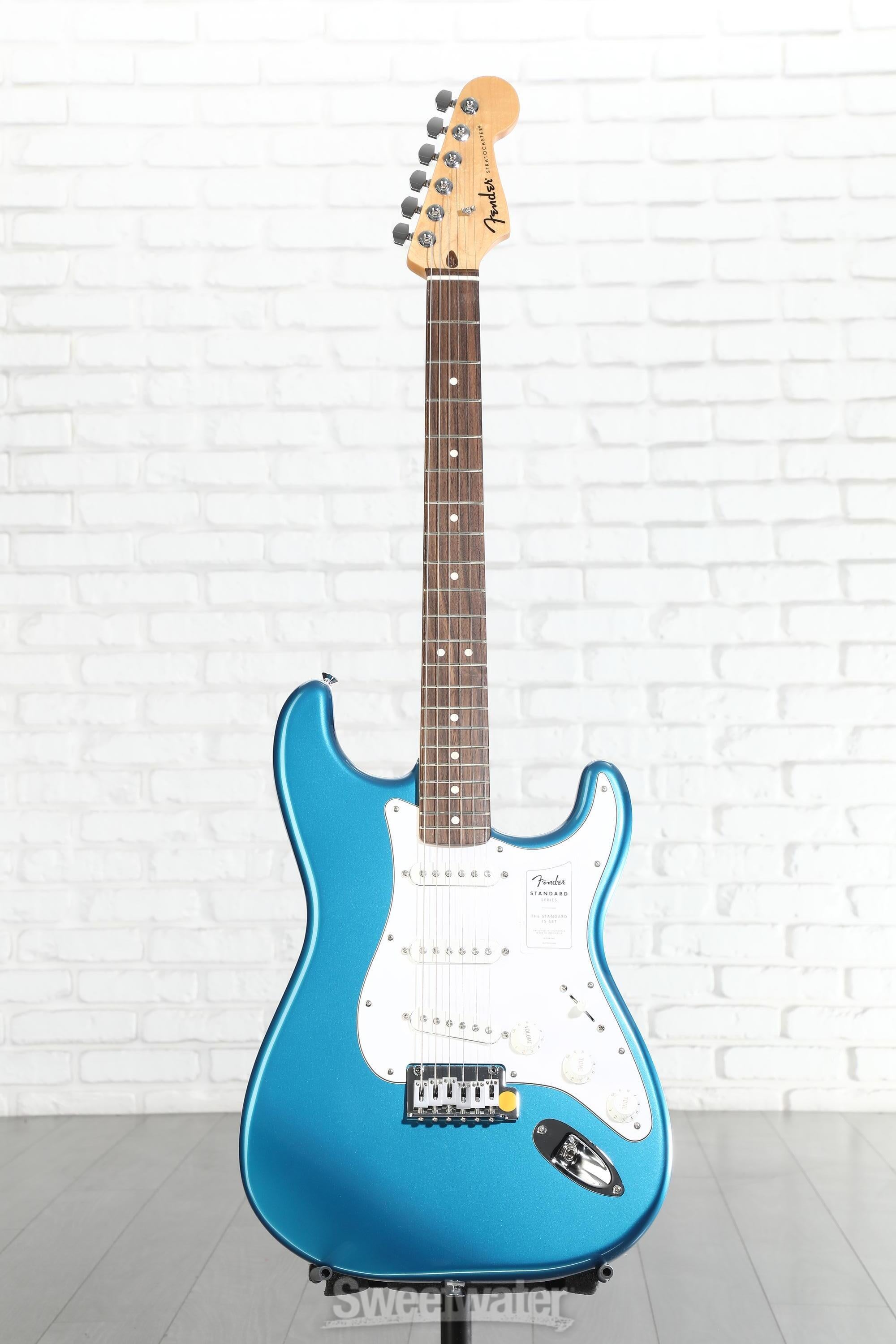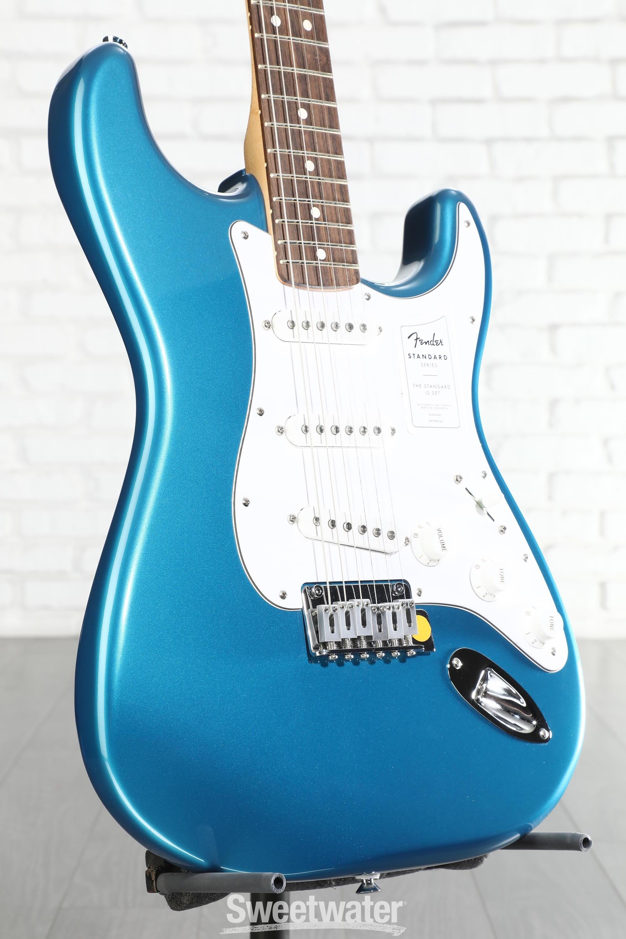 When you’re ready to experience quintessential Fender design and playability, look no further than the Fender Standard Stratocaster. Built with the player in mind, the standard design allows beginners and aficionados alike to experience essential Fender features that make the brand’s guitars the first choice of so many Sweetwater guitarists. With a satin-finished and time-tested modern C-shaped neck and a 9.5-inch-radius Indian laurel fingerboard, this guitar is immensely comfortable for both chords and individually fretted notes. The Standard Single-coil Strat pickups offer the iconic snappy tone, with high-output ceramic magnets that offer a more aggressive sound at full volume. Achieve patented Strat vibrato and dynamic versatility with the onboard 2-point synchronized tremolo system, complete with even tension that is easy to use and stays in tune. Whether you’re buying your first guitar or looking to add some Strat sparkle to your collection, the Standard Stratocaster offers all the playability, tonality, and style a Fender guitar can provide.