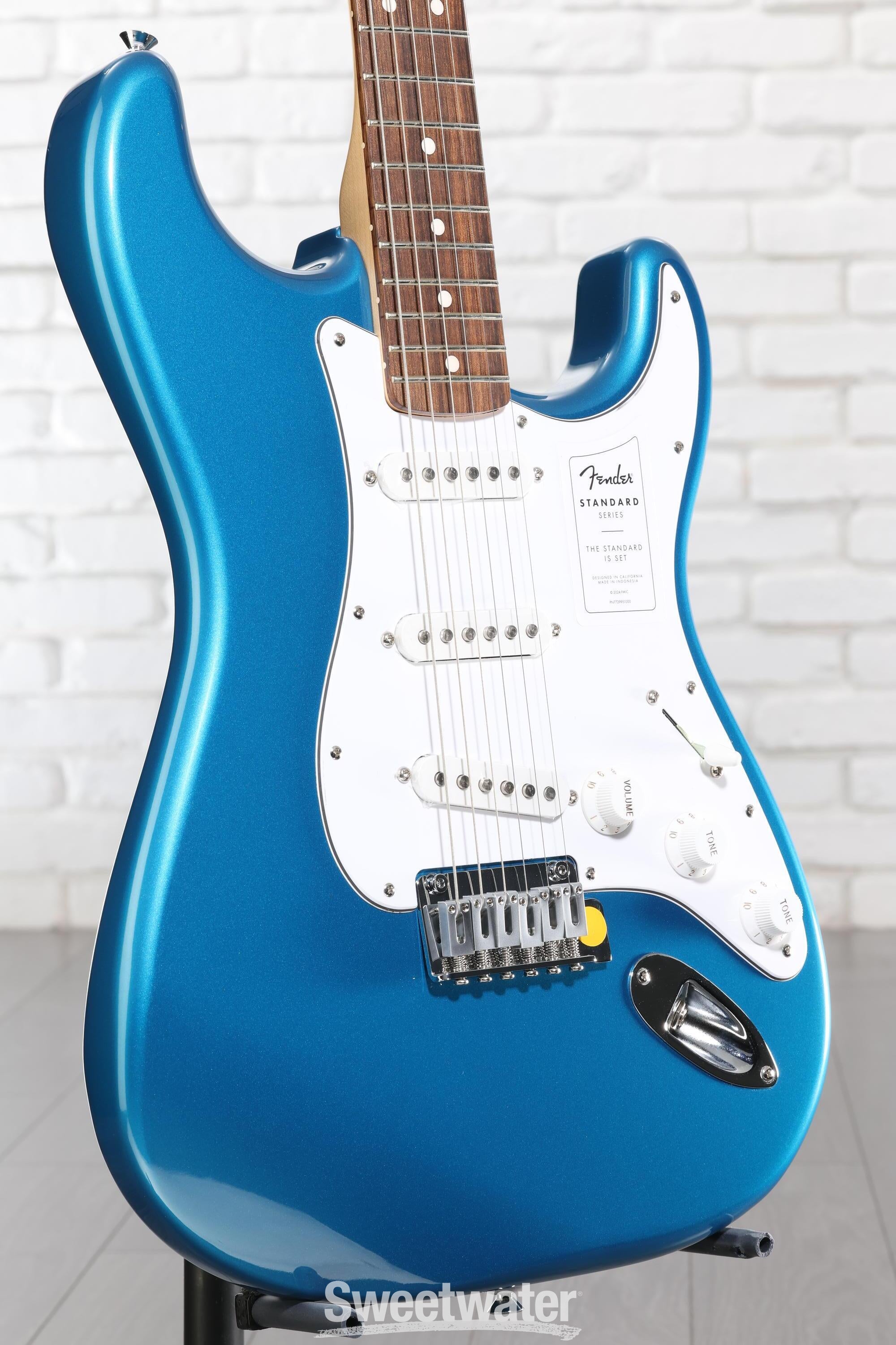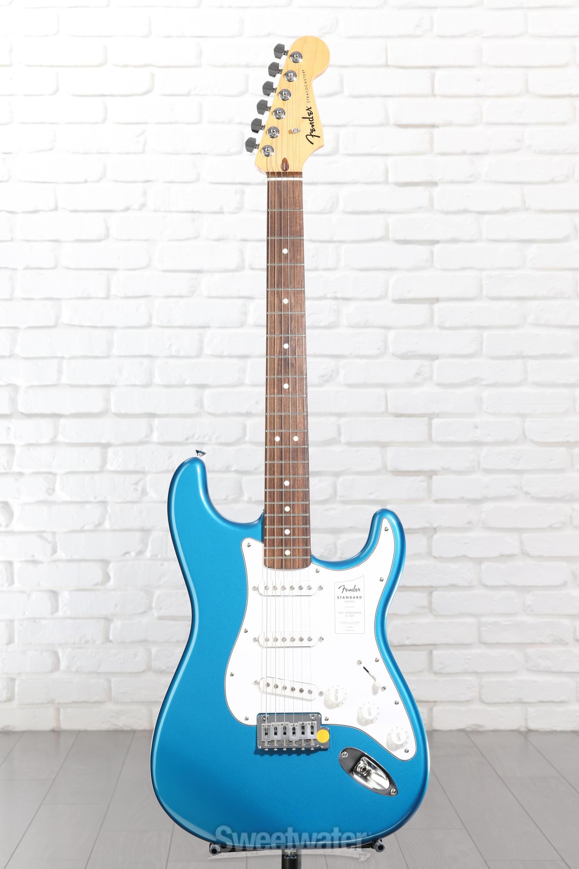 When you’re ready to experience quintessential Fender design and playability, look no further than the Fender Standard Stratocaster. Built with the player in mind, the standard design allows beginners and aficionados alike to experience essential Fender features that make the brand’s guitars the first choice of so many Sweetwater guitarists. With a satin-finished and time-tested modern C-shaped neck and a 9.5-inch-radius Indian laurel fingerboard, this guitar is immensely comfortable for both chords and individually fretted notes. The Standard Single-coil Strat pickups offer the iconic snappy tone, with high-output ceramic magnets that offer a more aggressive sound at full volume. Achieve patented Strat vibrato and dynamic versatility with the onboard 2-point synchronized tremolo system, complete with even tension that is easy to use and stays in tune. Whether you’re buying your first guitar or looking to add some Strat sparkle to your collection, the Standard Stratocaster offers all the playability, tonality, and style a Fender guitar can provide.