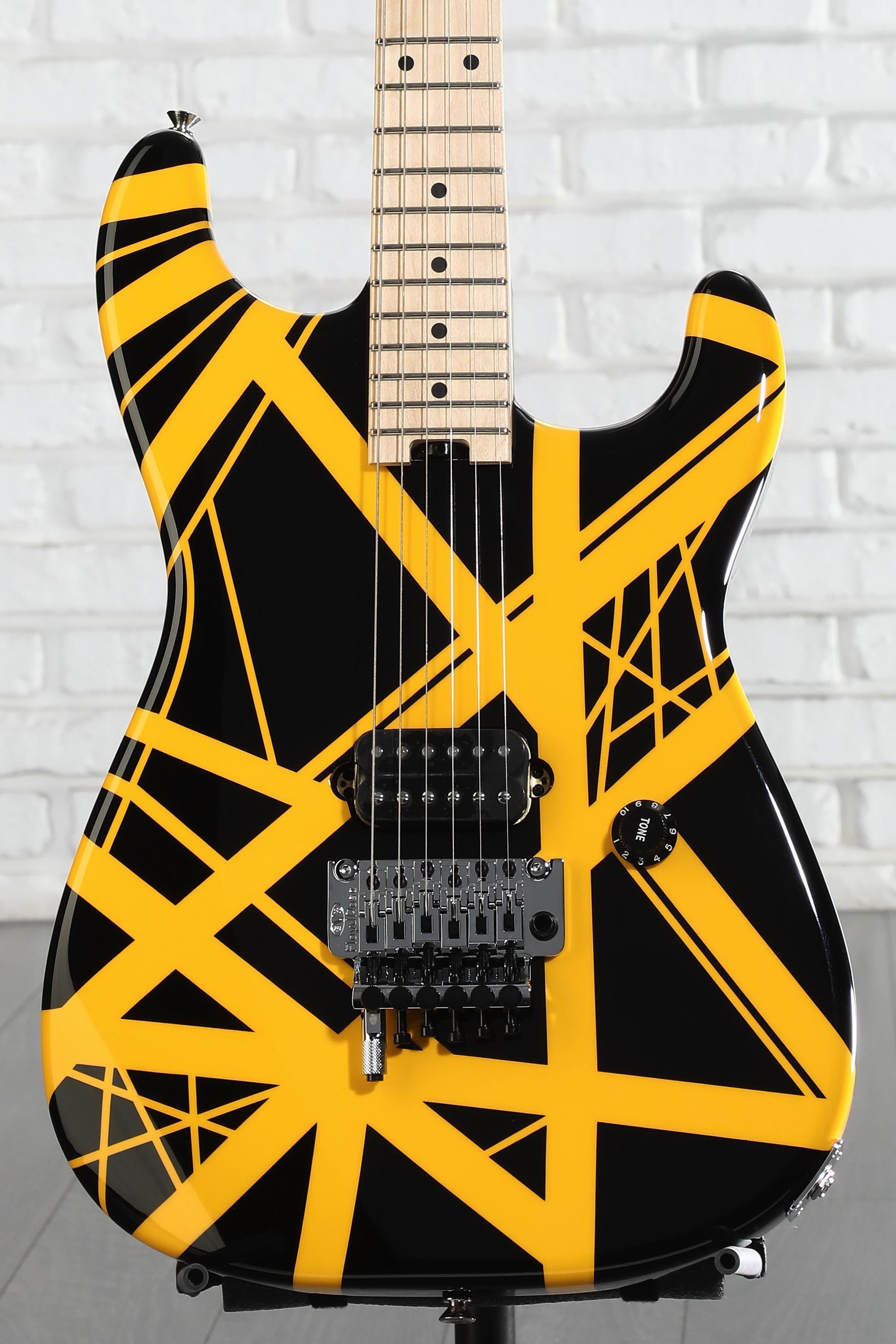 Get that classic EVH look with the EVH Striped Series guitar. This affordable guitar sports a basswood body, a 1-piece maple neck, and a Floyd Rose bridge. The EVH Striped Series gives you that classic look that spans the decades of Van Halen's rock empire. A single, direct-to-body mounted EVH pickup delivers hot and articulated guitar tones that you expect from an EVH guitar. Built to Van Halen's exact specifications, the EVH Striped Series gives you absolutely awesome tone, practical playability and comfort, and the kind of stunning looks you'd expect from a world-class guitar.