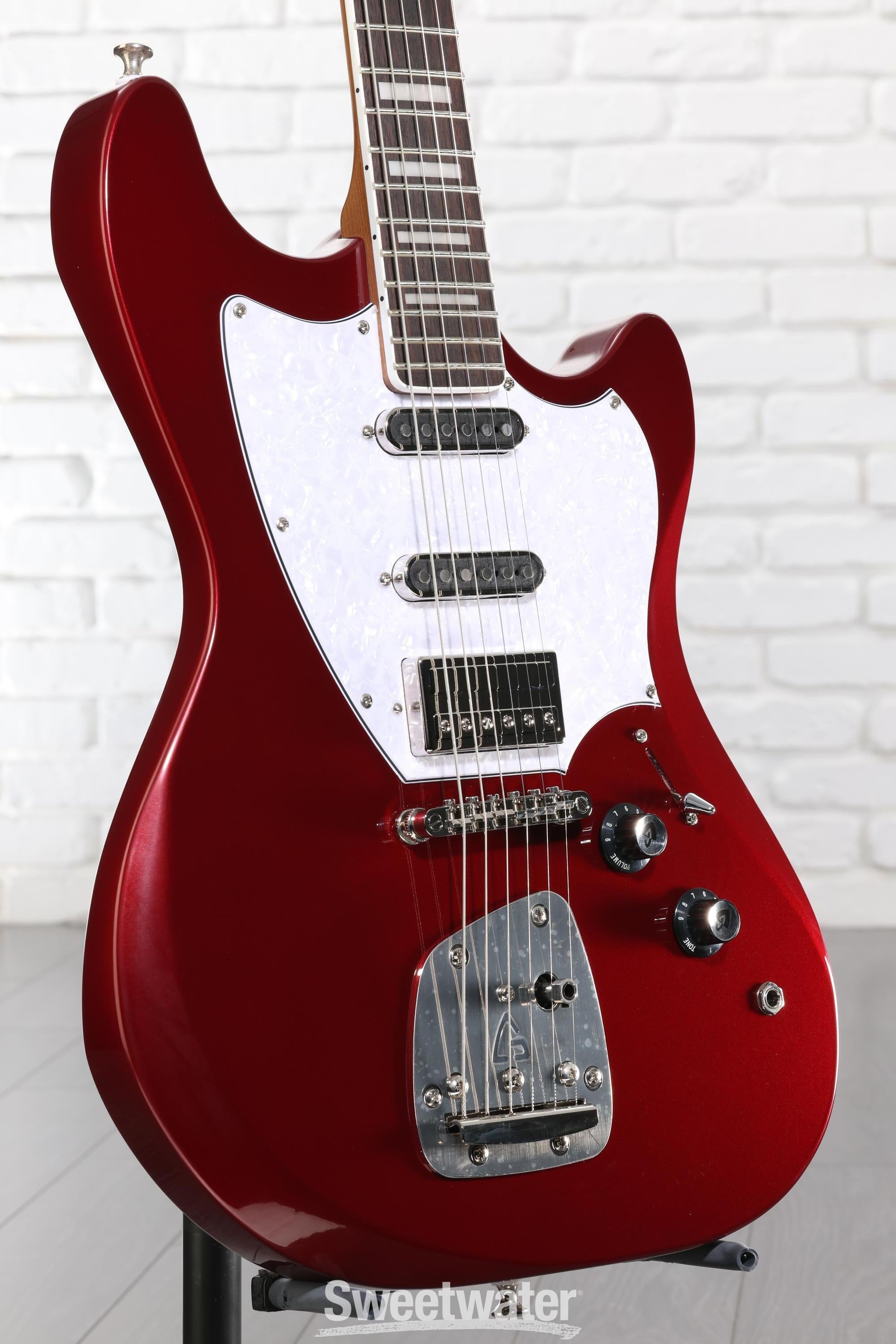 While this guitar takes inspiration from the surf guitars of the ’60s, the Surfliner Deluxe’s modernized HSS pickup combo can cover almost any style you can throw at it! The Guild HB-2 mini humbucker bridge pickup provides a full, punchy tone that’s equally at home with twangy tremolo picking as it is with fuzzed-out garage rock lead tones. Two Aerosonic pickups in the middle and the neck position bring the single-coil clarity, ideal for players looking to capture more traditional offset-style guitar tones.