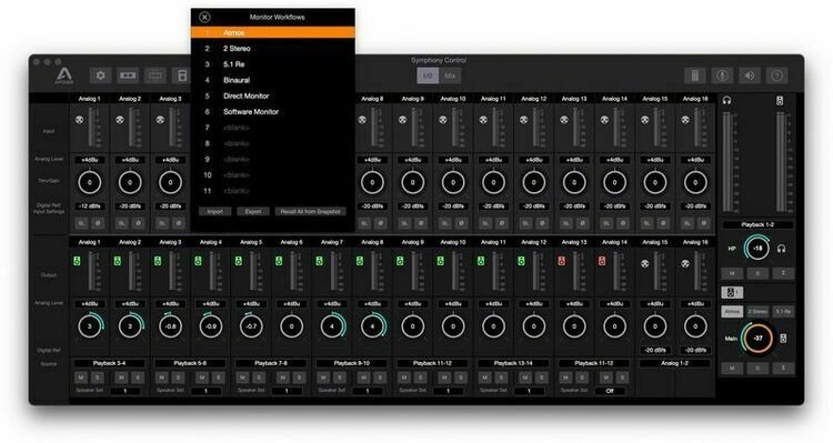 - Apogee Network Control software supplies remote control of Symphony I/O settings