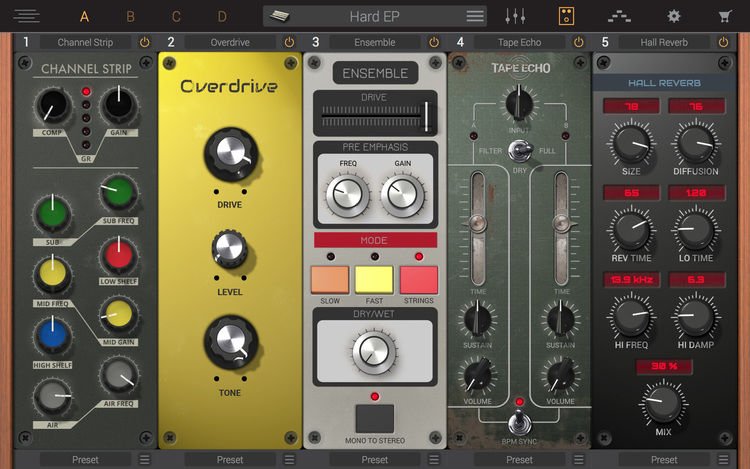 38 effects from AmpliTube and T-RackS