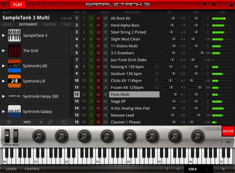 Syntronik includes over 50GB of sounds, arranged in over 2,000 presets. You can browse presets quickly by category or by keyword. And if you're already a fan of IK Multimedia's SampleTank software, good news — you can load up Syntronik sounds in SampliTude to maintain your familiar workflow.
